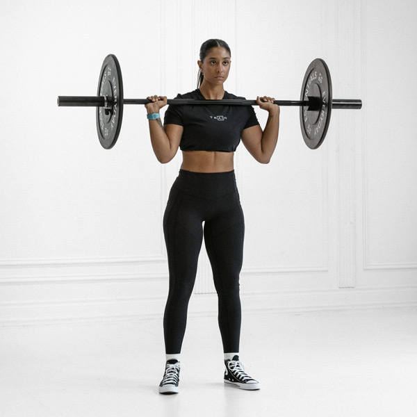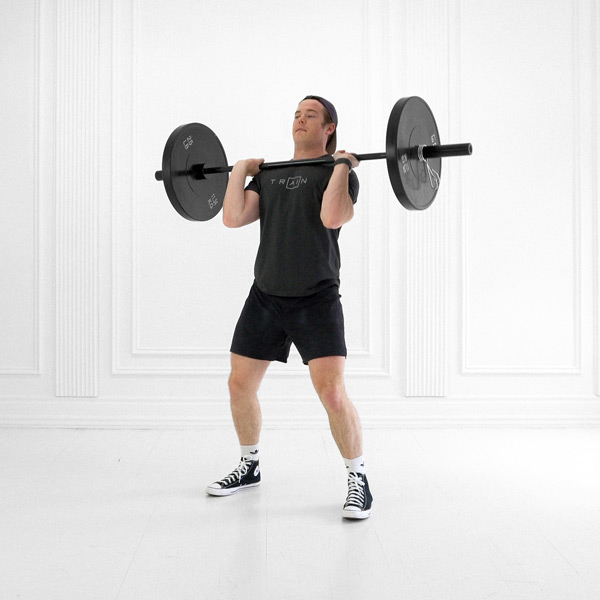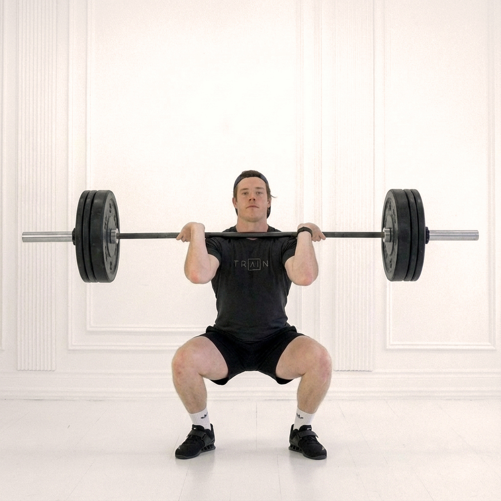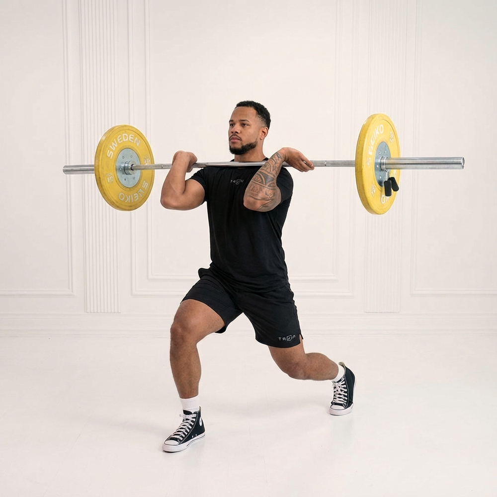 Explosive full-body Olympic lift that raises a barbell from the floor to the shoulders, targeting quads, glutes, hamstrings, and traps to build power, strength, and coordination; progressed from hang or power variations.