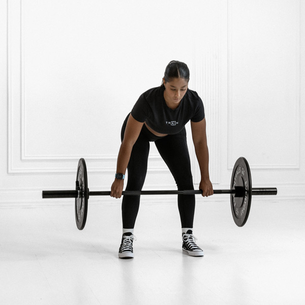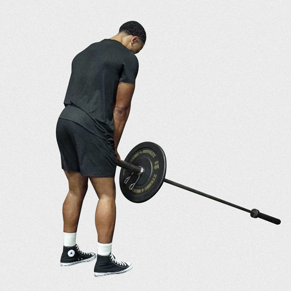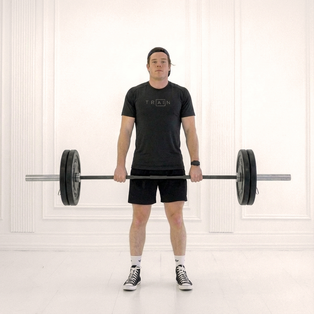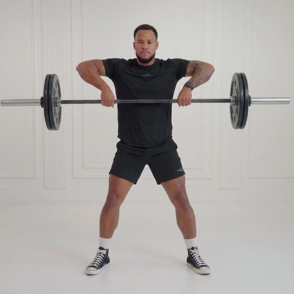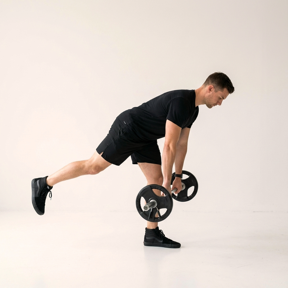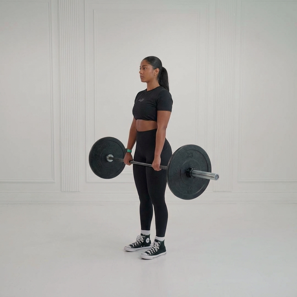 A full-body hip hinge movement using a barbell that targets the glutes, hamstrings, quads, and lower back to build strength, muscle mass, and posterior chain power.