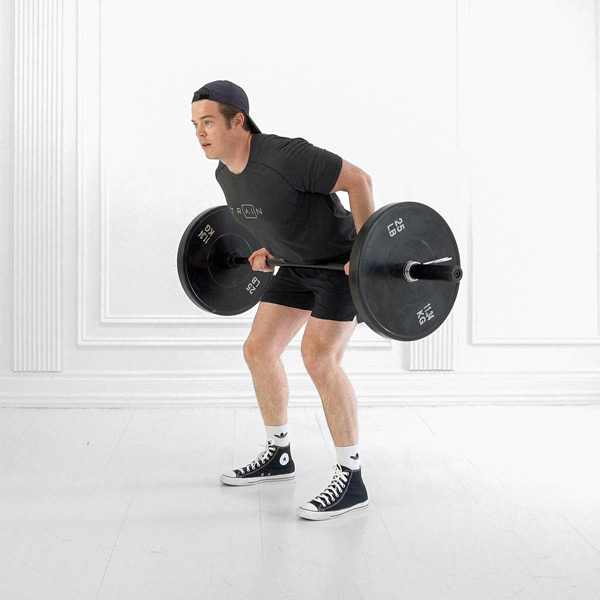 Inhale as you lower the weight; exhale as you pull toward your body while bracing your core.