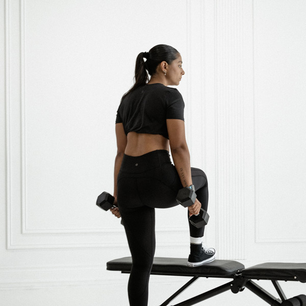 Inhale as you descend; exhale as you drive up while bracing core.