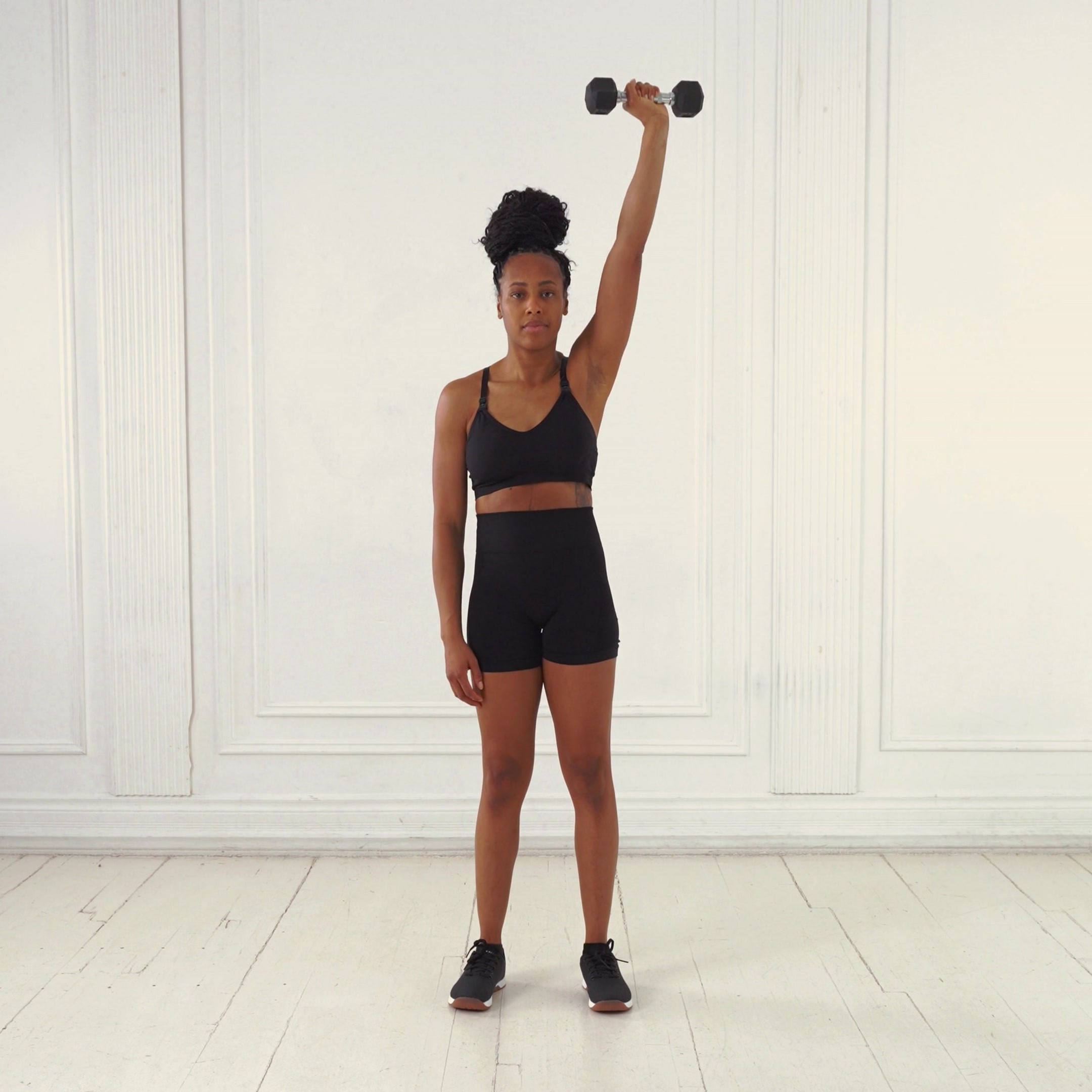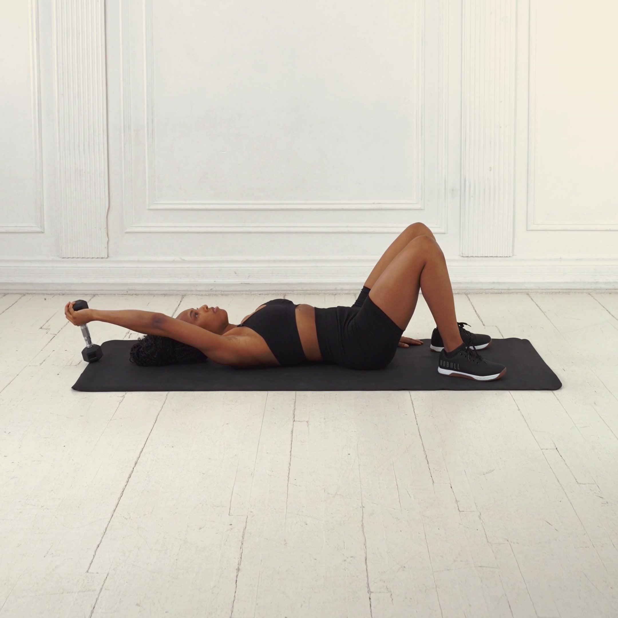 Allow the shoulder to protract slightly at the bottom for a stretch; pull until the dumbbell touches the side of the torso.