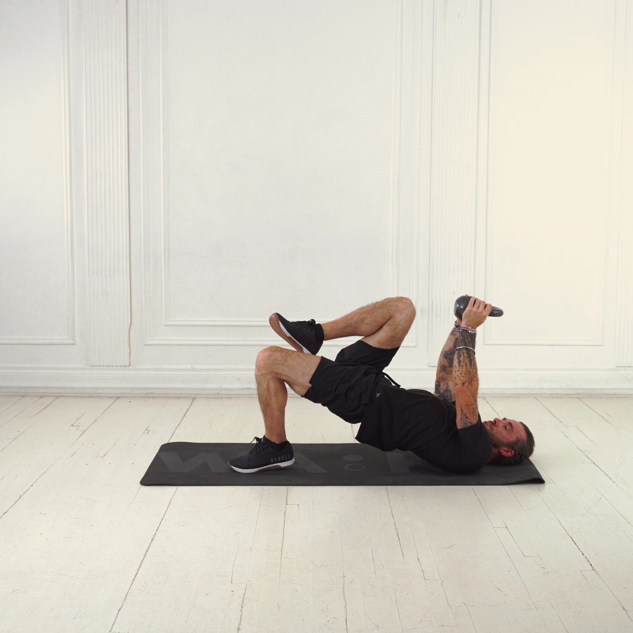 Inhale as you lower hips; exhale as you lift and squeeze glutes.
