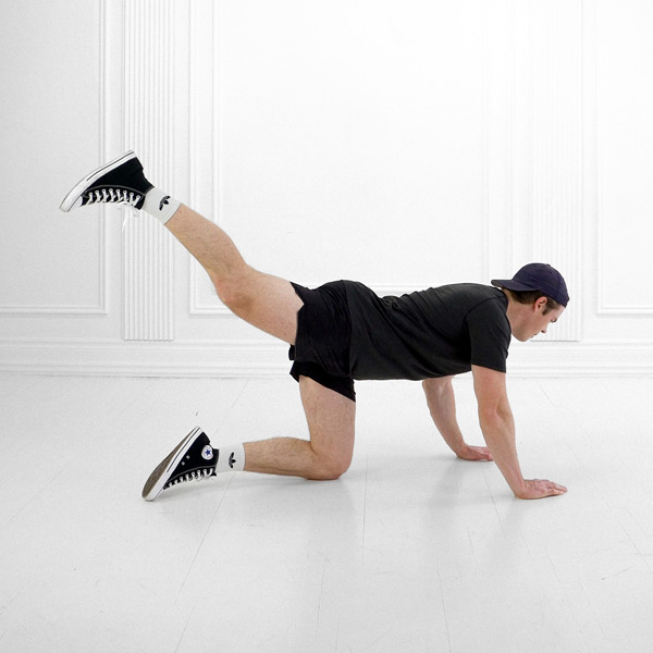 Stand with feet shoulder-width apart, toes slightly outward. Extend arms forward for balance and brace your core.