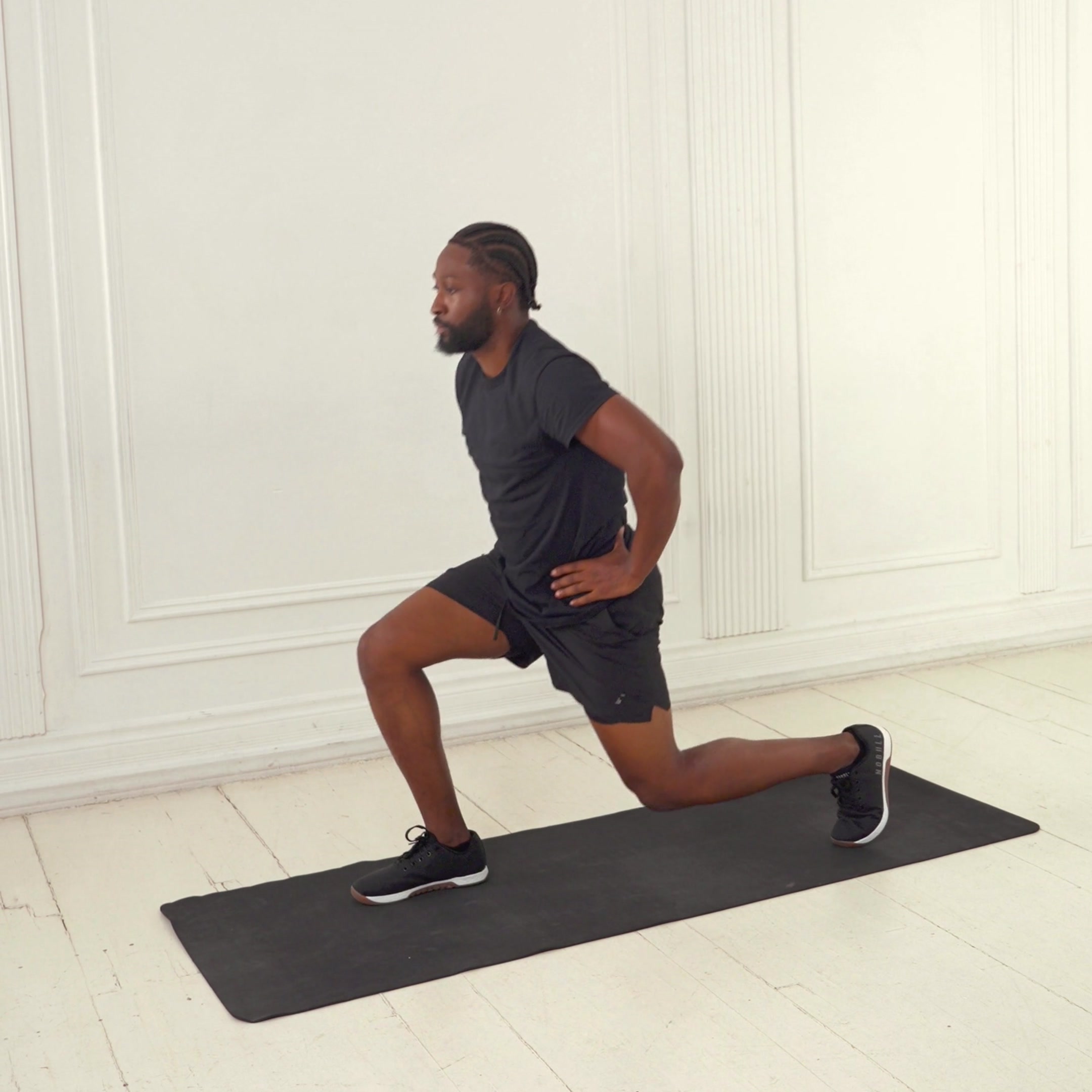 Inhale before starting the walk; maintain steady, controlled breathing throughout the movement.