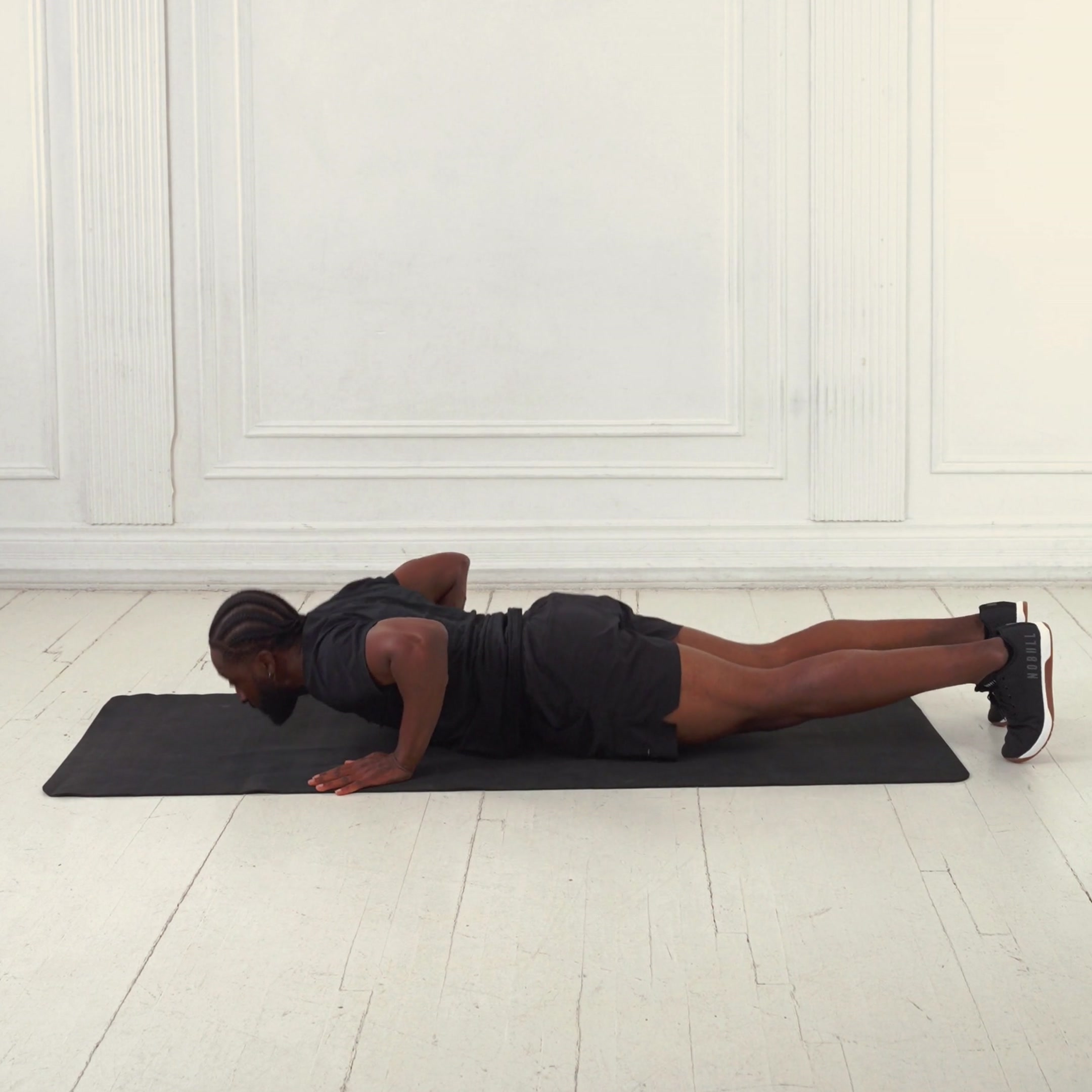 Lower to full squat with thighs parallel; plank from head to heels straight; push-up chest to 1-2 inches from ground; full extension on jump.