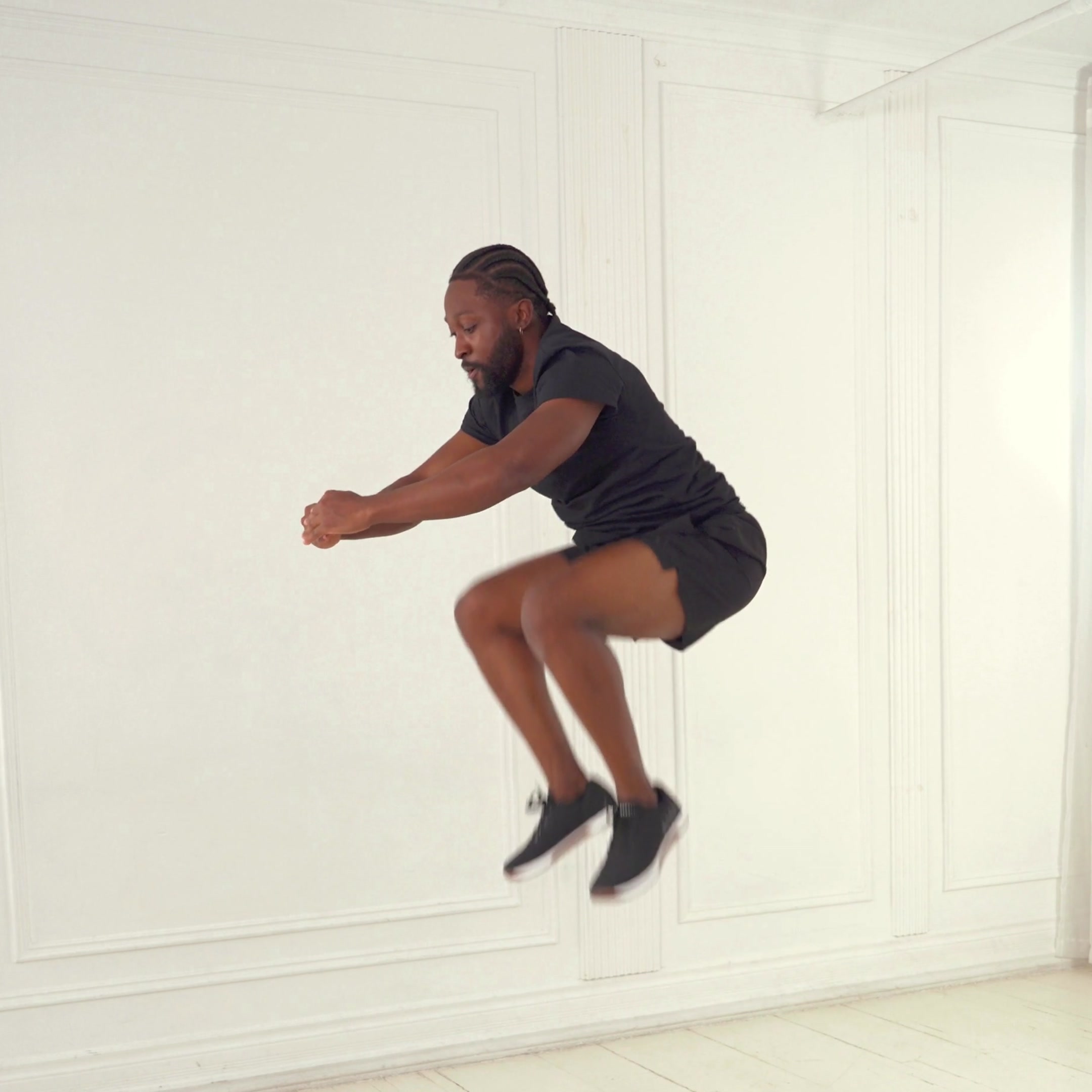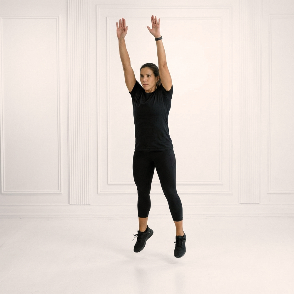 Full-body dynamic exercise combining squat, plank, push-up, and explosive jump that targets quads, glutes, chest, core, and more to build strength, endurance, and cardiovascular fitness.