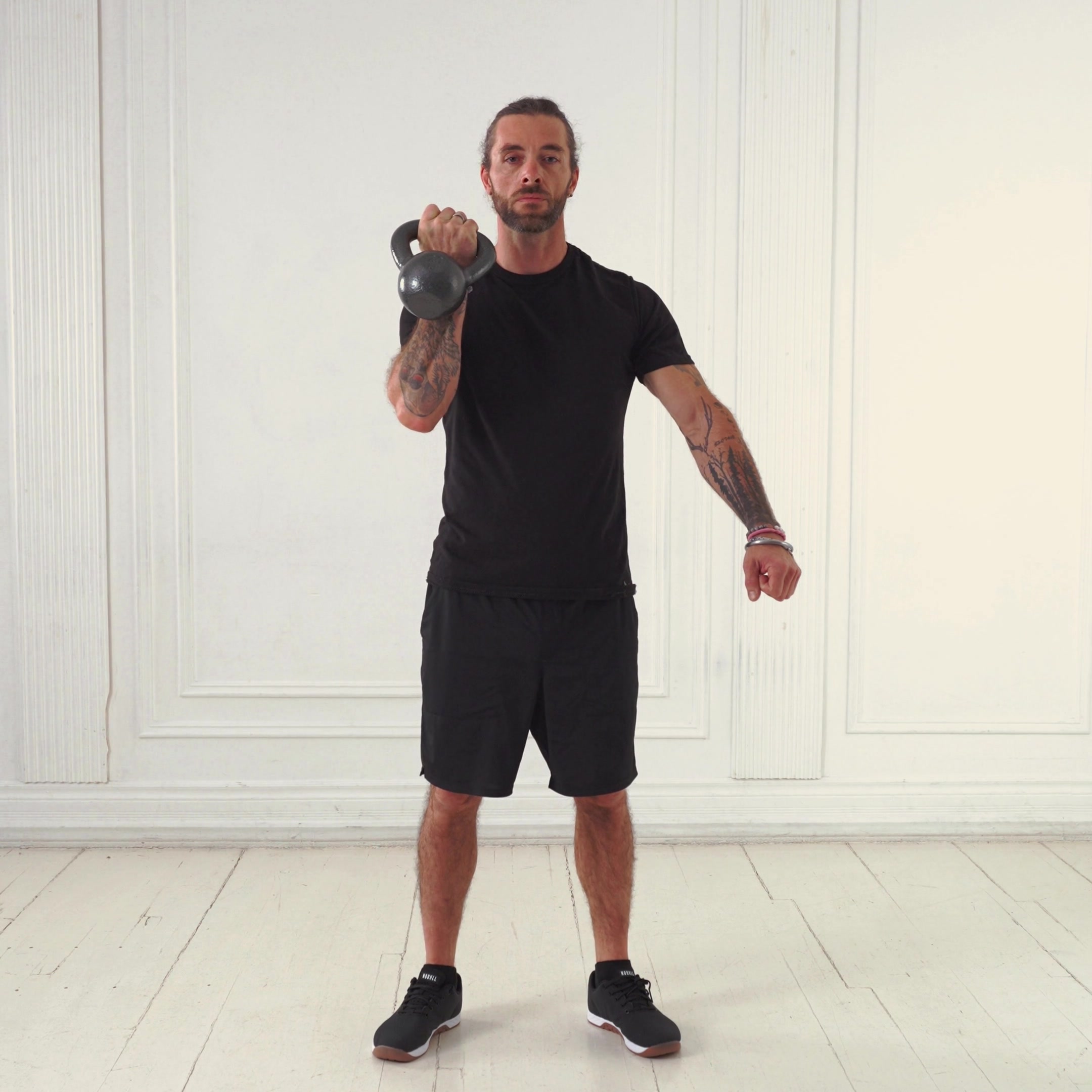 Extend arms fully with slight elbow bend at bottom; curl to 90-degree elbow angle at top without shoulders rising.
