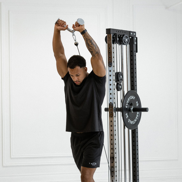 Cable rope tricep pushdown is an isolation exercise targeting the triceps for arm hypertrophy and pressing strength, using constant cable tension to engage all three heads.
