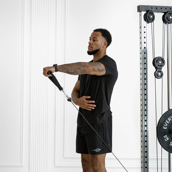 Inhale during the return phase and exhale as you pull the cable outward while bracing your core.