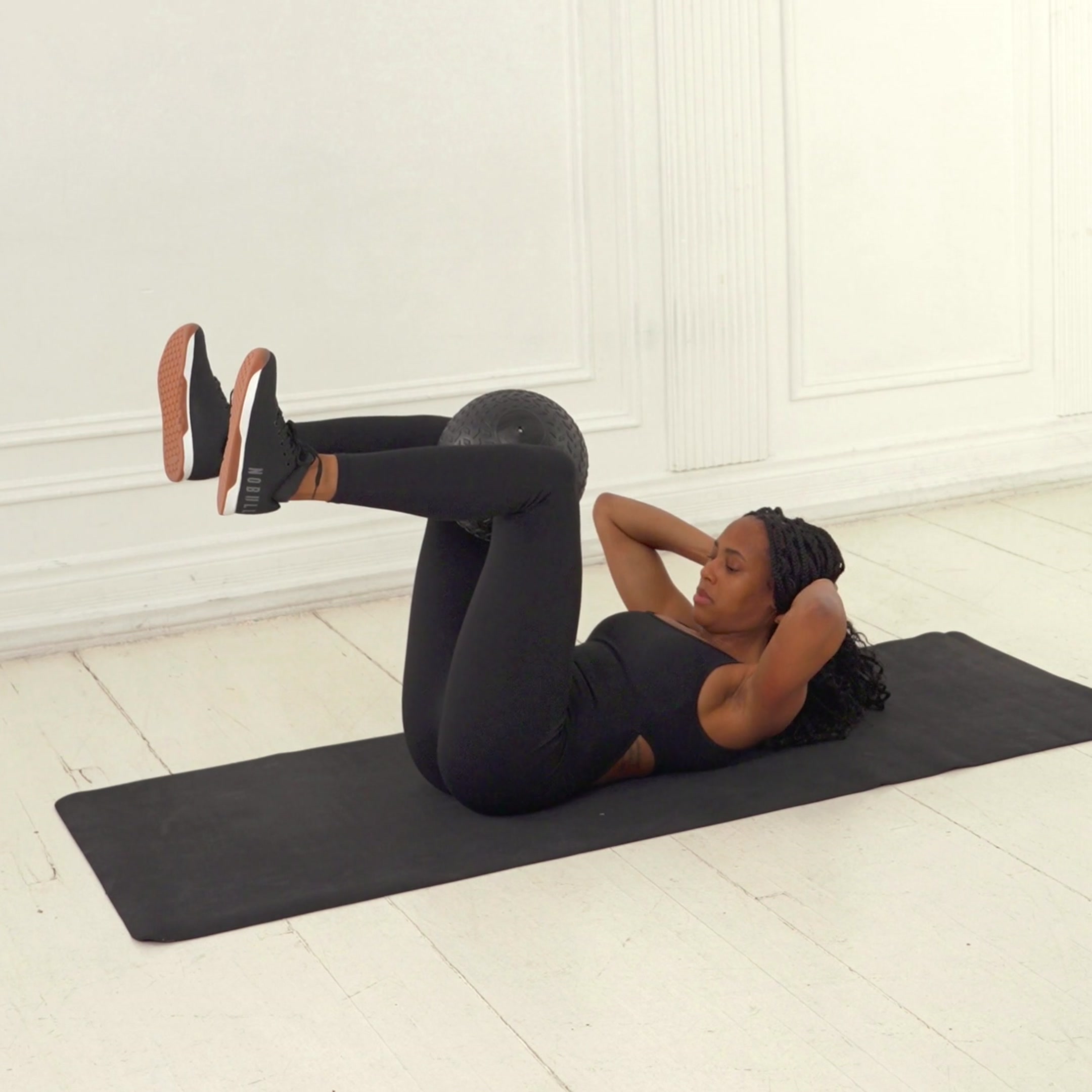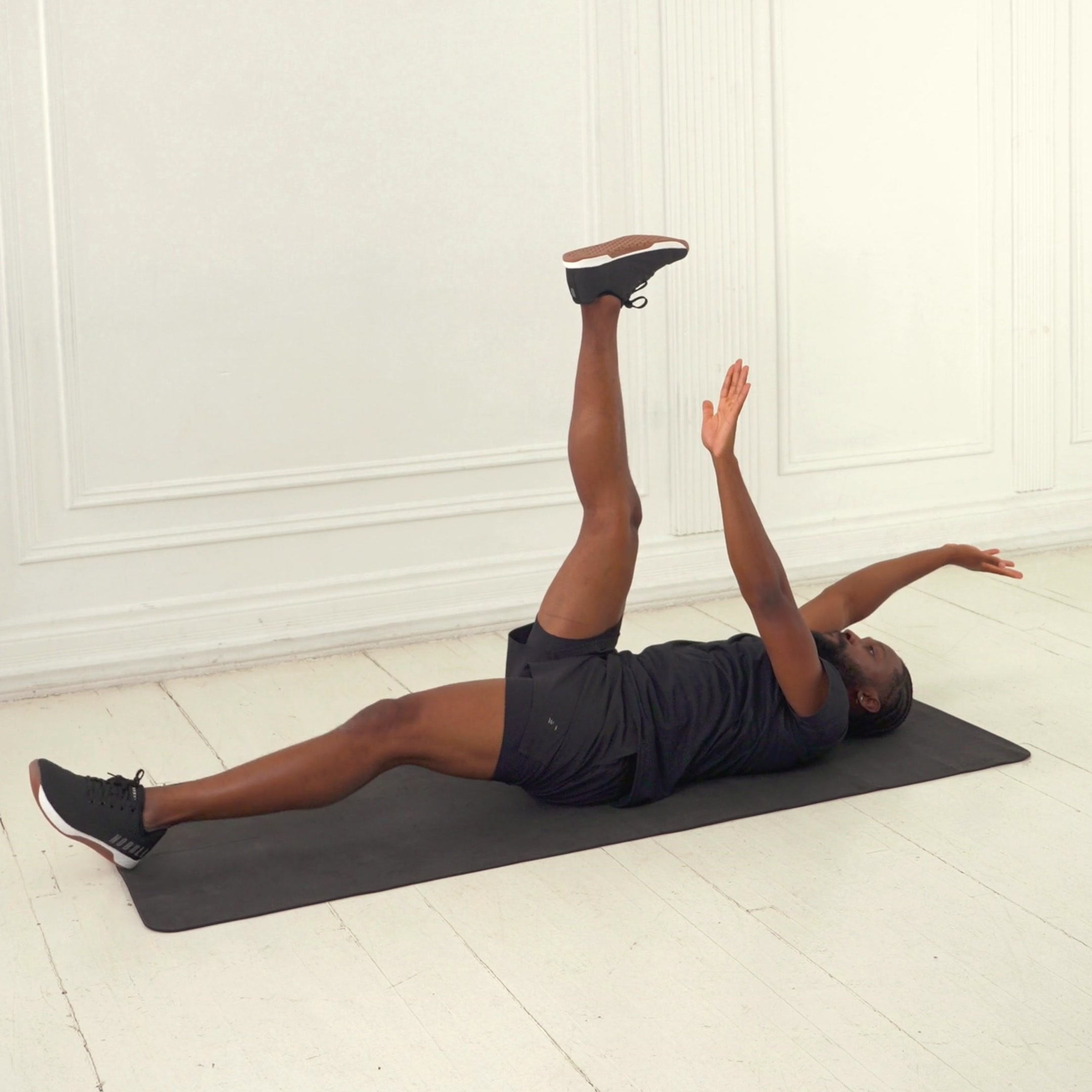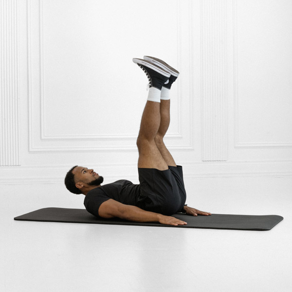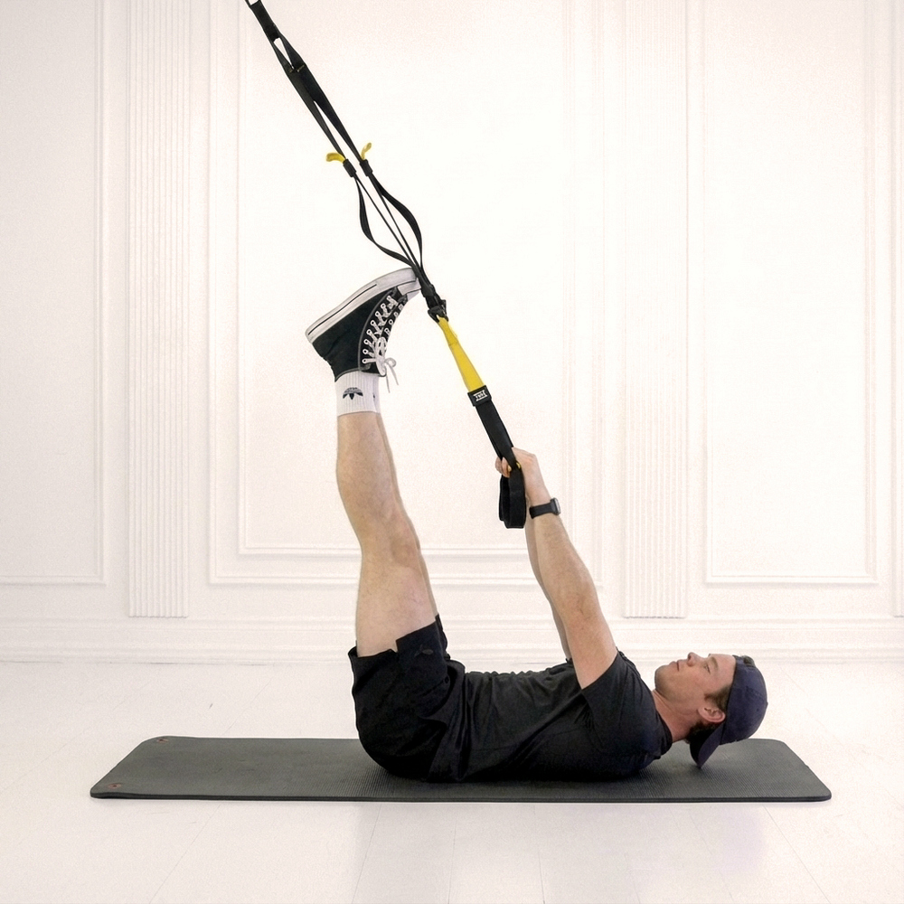 Inhale while lowering legs; exhale sharply as you lift and contract core.