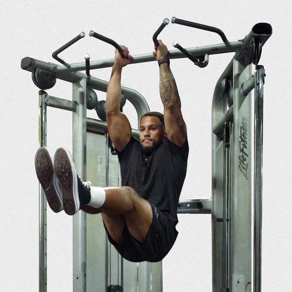 Bodyweight core exercise on Captain's Chair that targets abs and hip flexors to build strength, endurance, and stability; intermediate movement scalable by leg position.