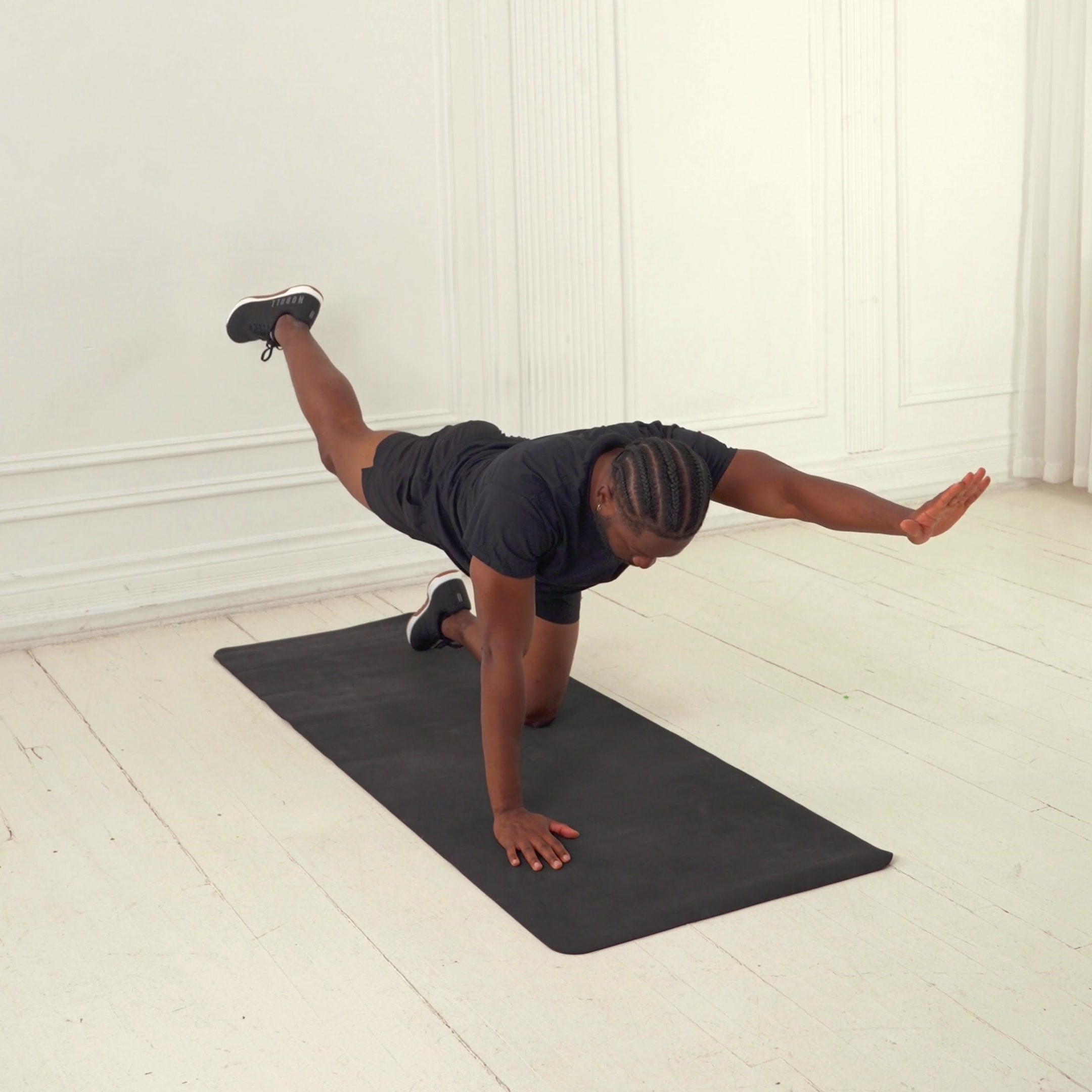 Extend the arm and leg until they form a straight line with your torso; avoid hyperextending the lower back.