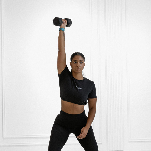 Spotting not typically needed; use safeties or partner to assist with dumbbell if heavy.