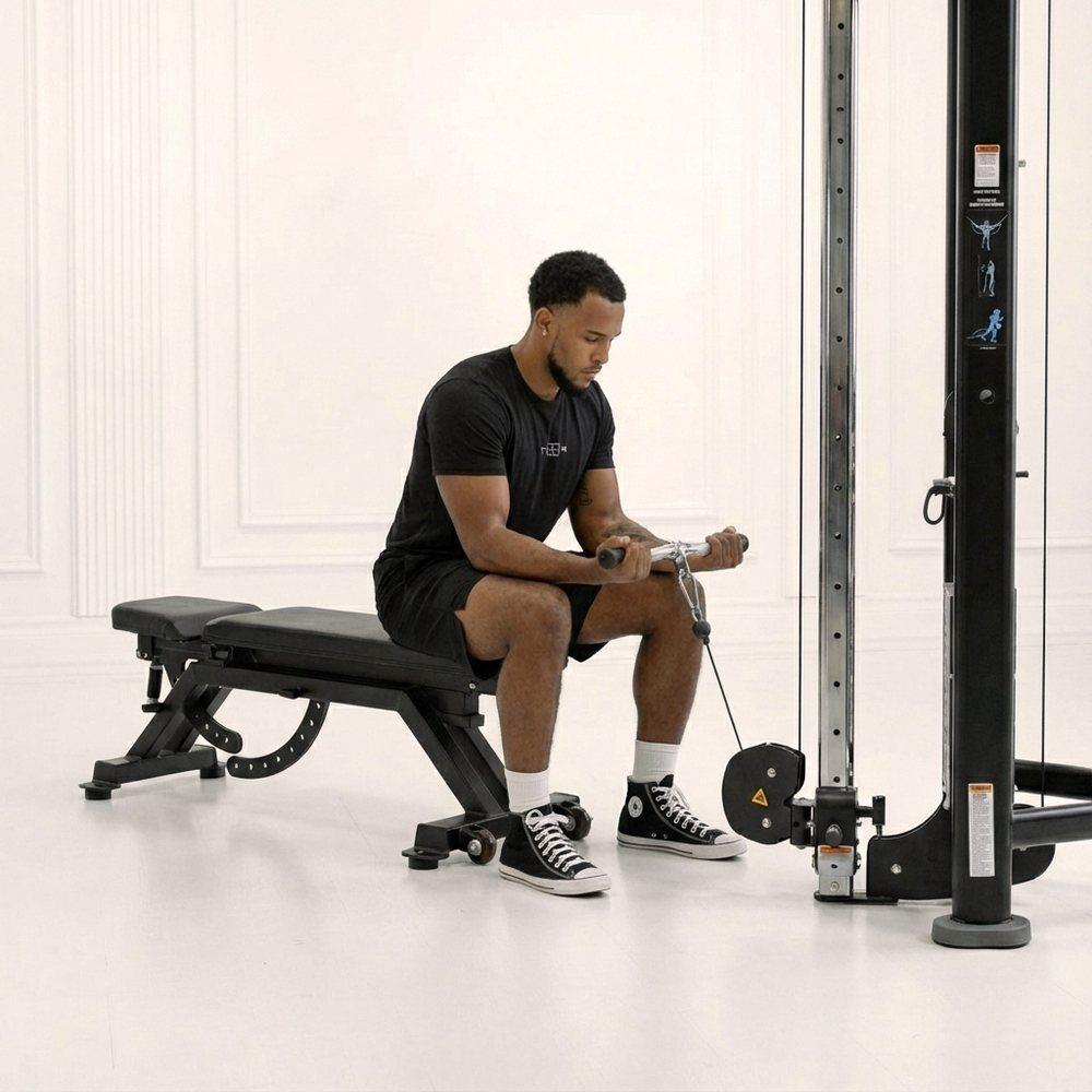 Spotting not typically required; use lighter weights or safeties if needed for heavier loads.