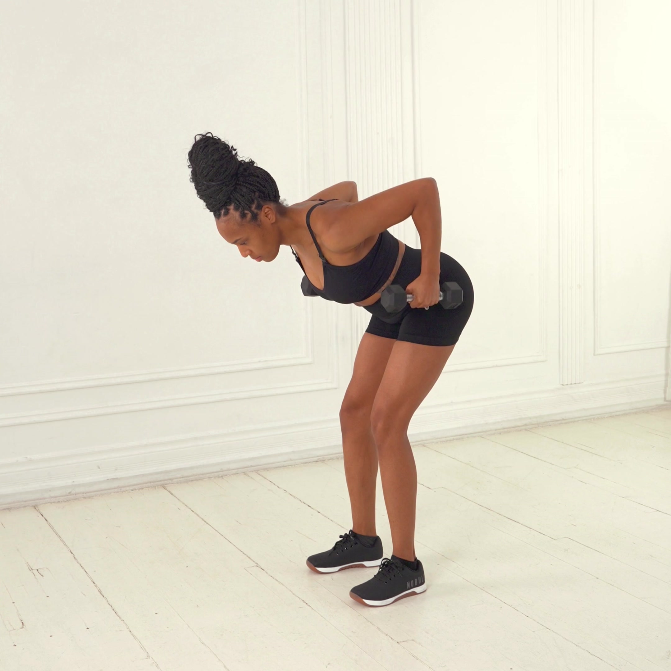 A horizontal pull exercise using one dumbbell and bench support that targets the lats, rhomboids, and rear delts to build back strength, improve posture, and address imbalances; commonly scaled by weight or reps.