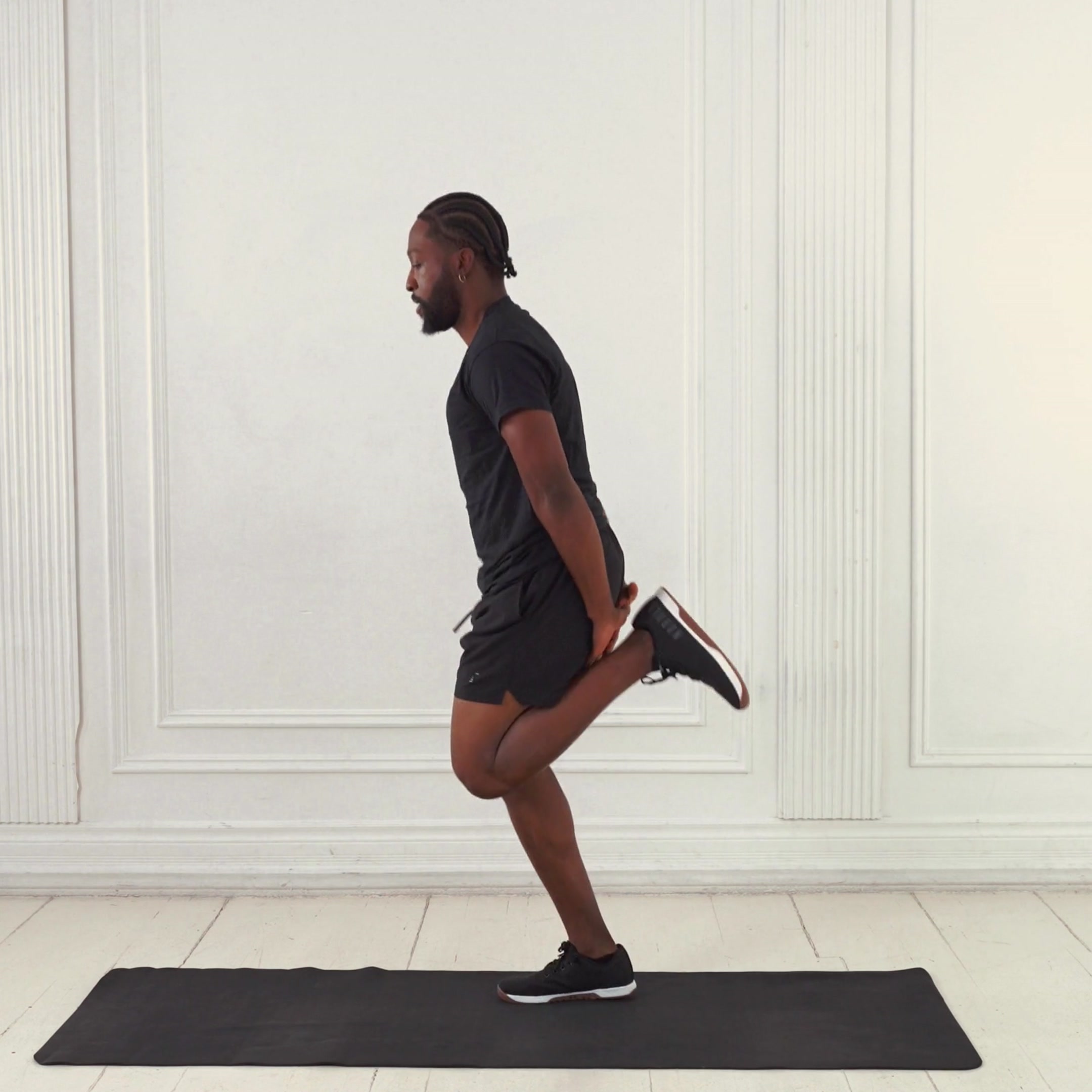 Legs hover 3-6 inches above floor; alternate up to 6-8 inches high and down to just above ground without contact.