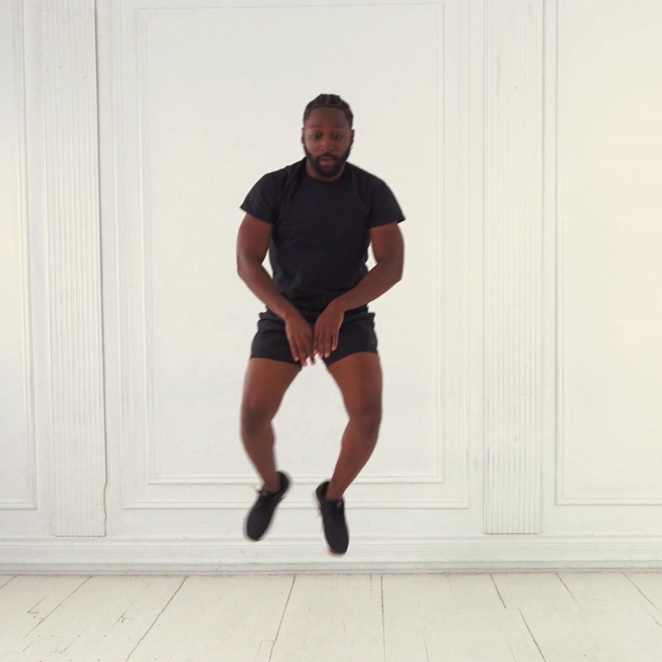 No spotting required; exercise is self-supported with focus on controlled landings.