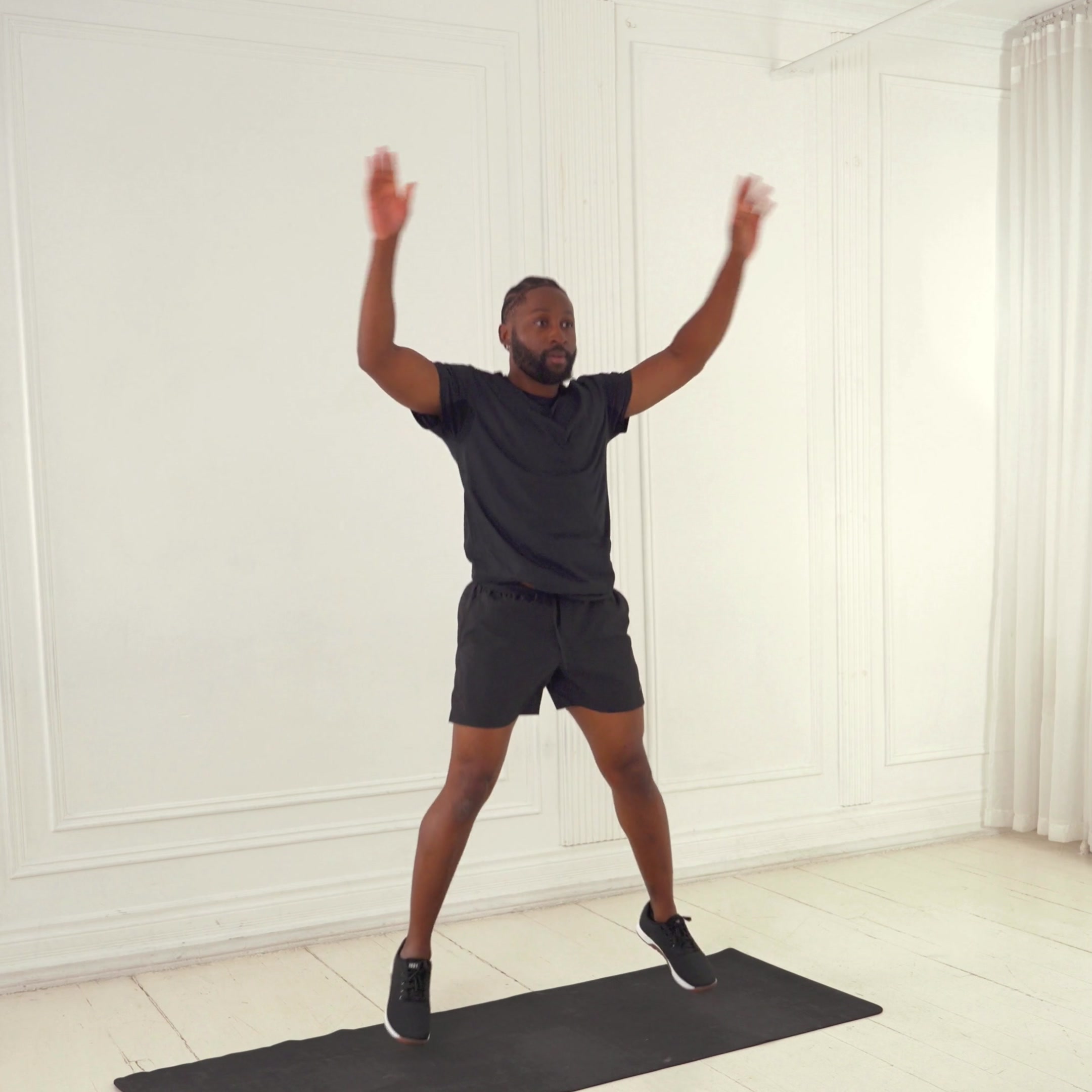 Dynamic plyometric exercise alternating narrow and wide squat jumps that targets quads, glutes, and hamstrings to build explosive power, agility, and cardiovascular fitness.