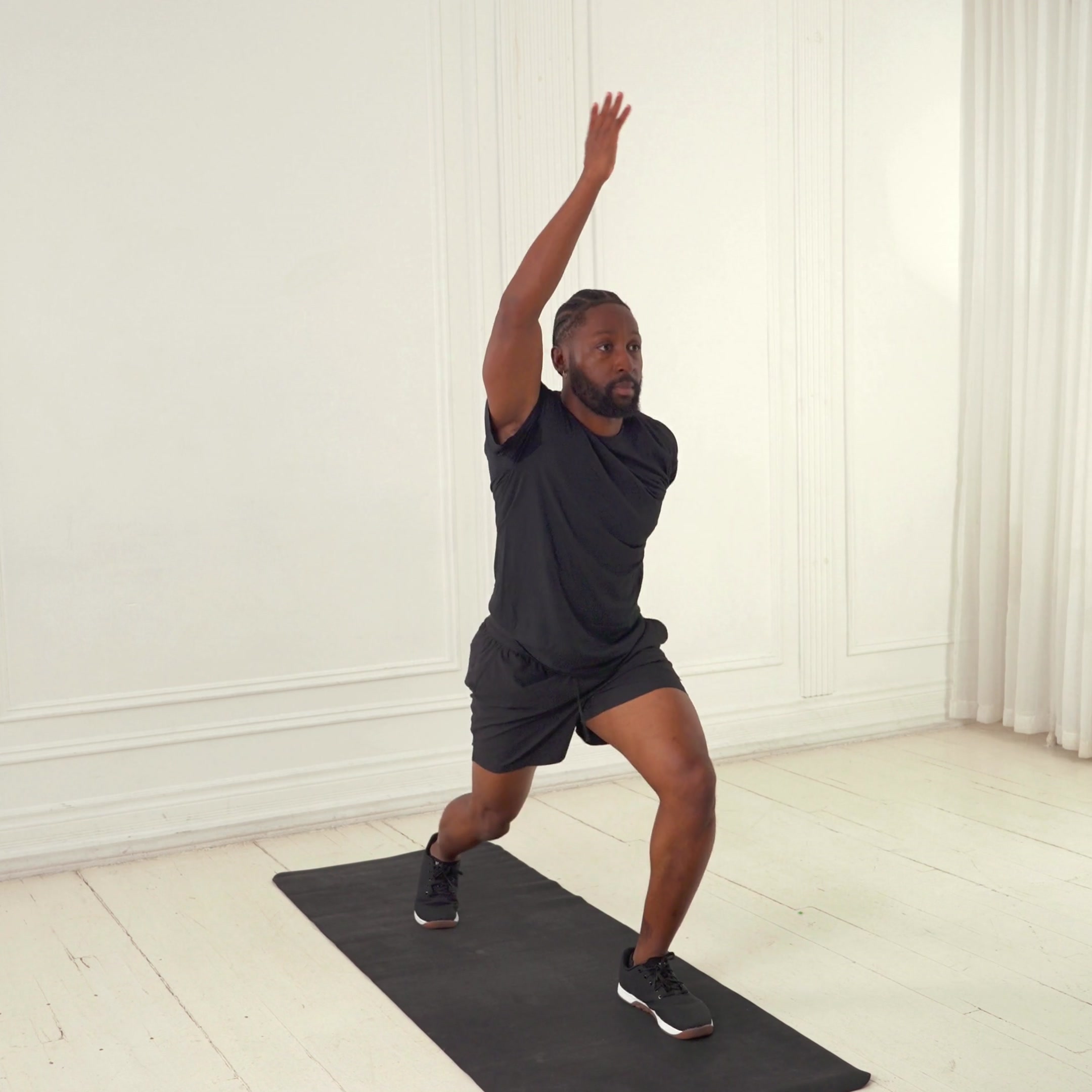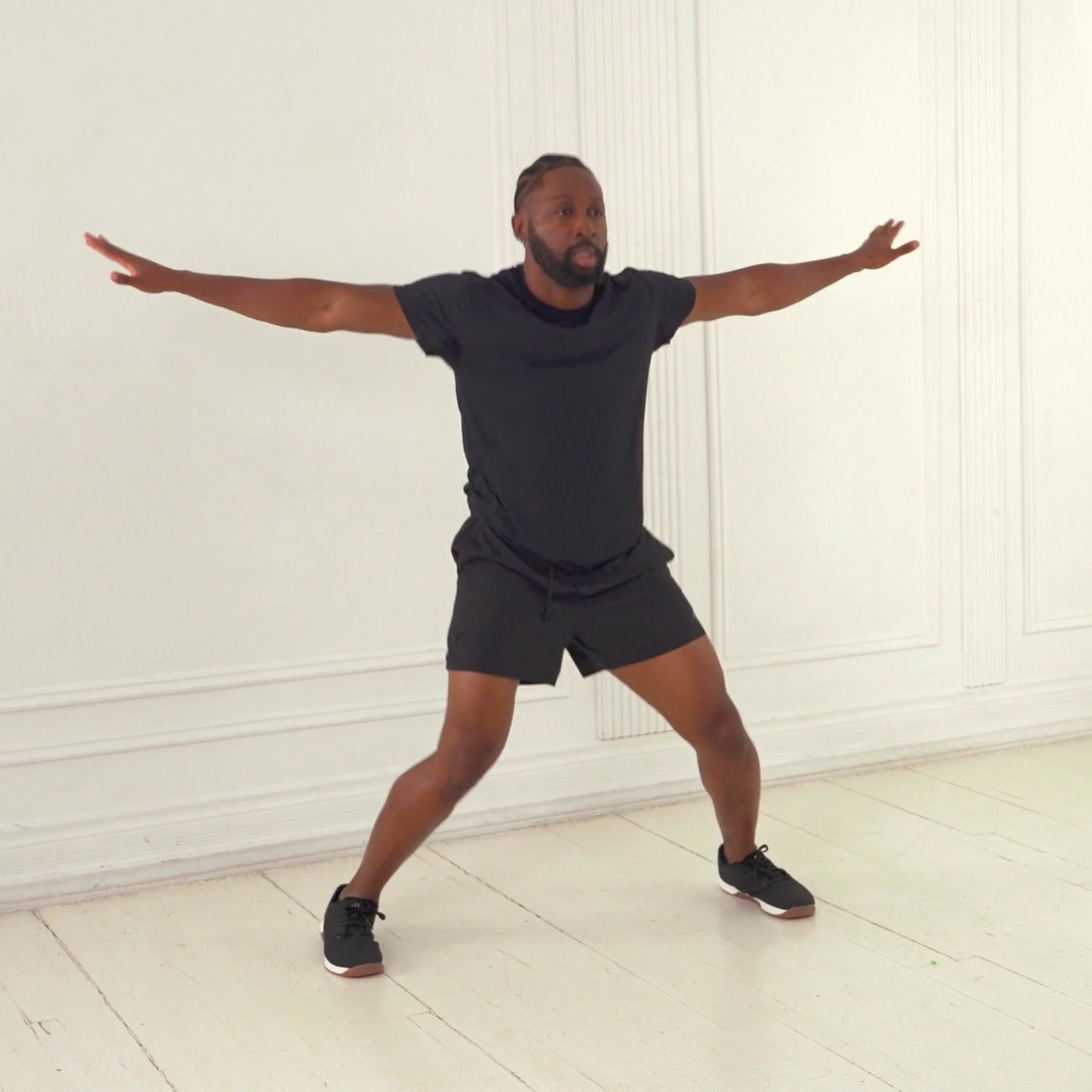 Stand tall with feet together and arms at sides, core lightly engaged.