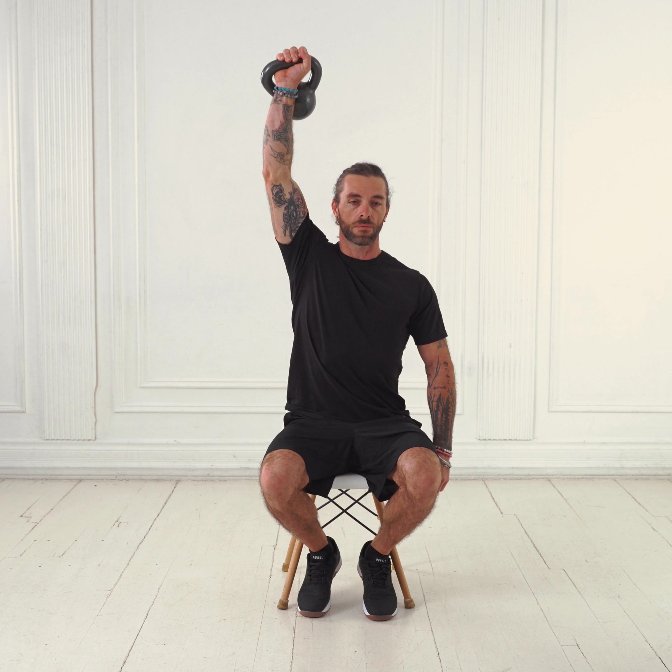 Lie on your side in a fetal position with the kettlebell gripped in the lower hand, handle diagonal across palm. Roll to supine and press kettlebell overhead with arm locked, shoulder packed.