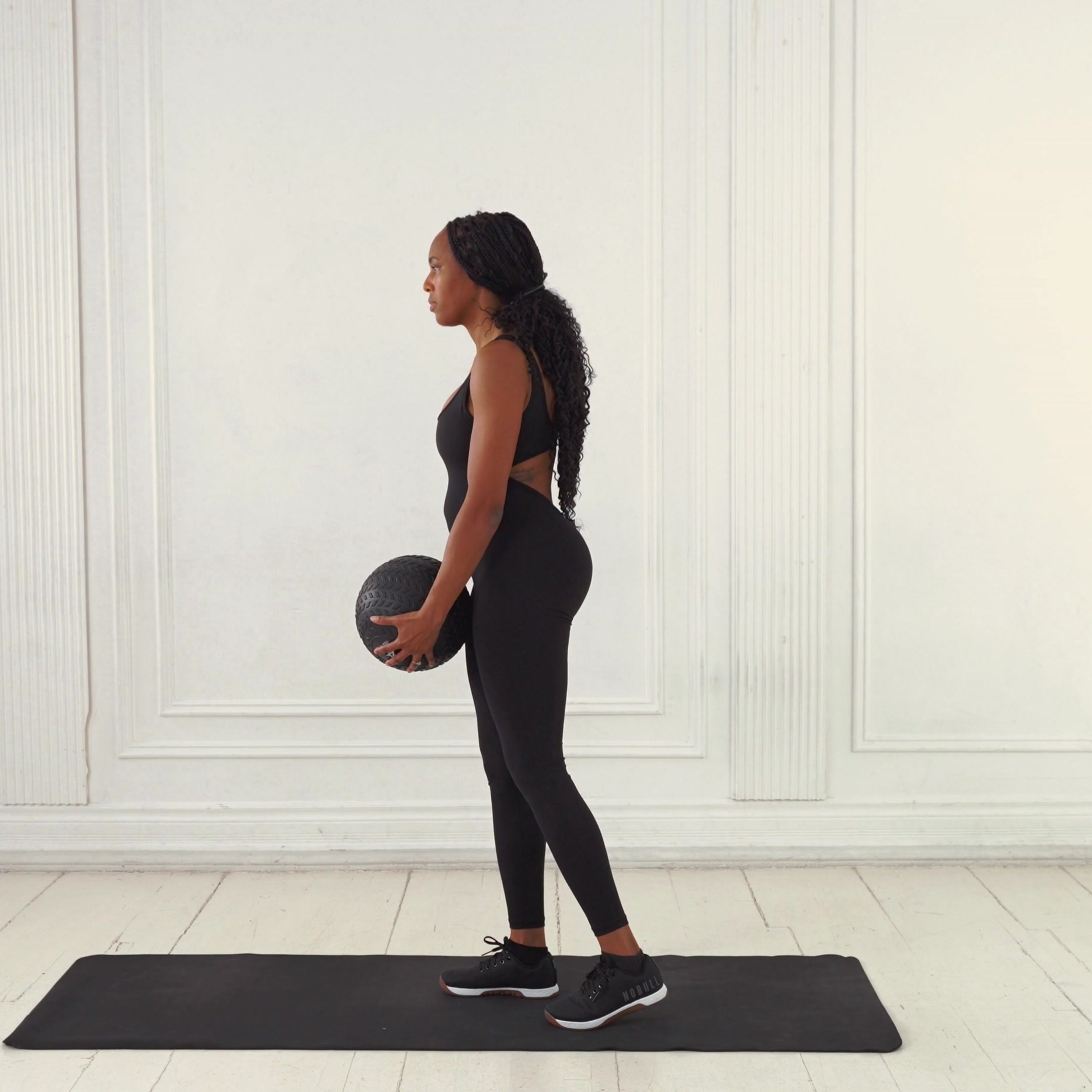 Inhale as you hinge down, brace core, exhale as you drive up.
