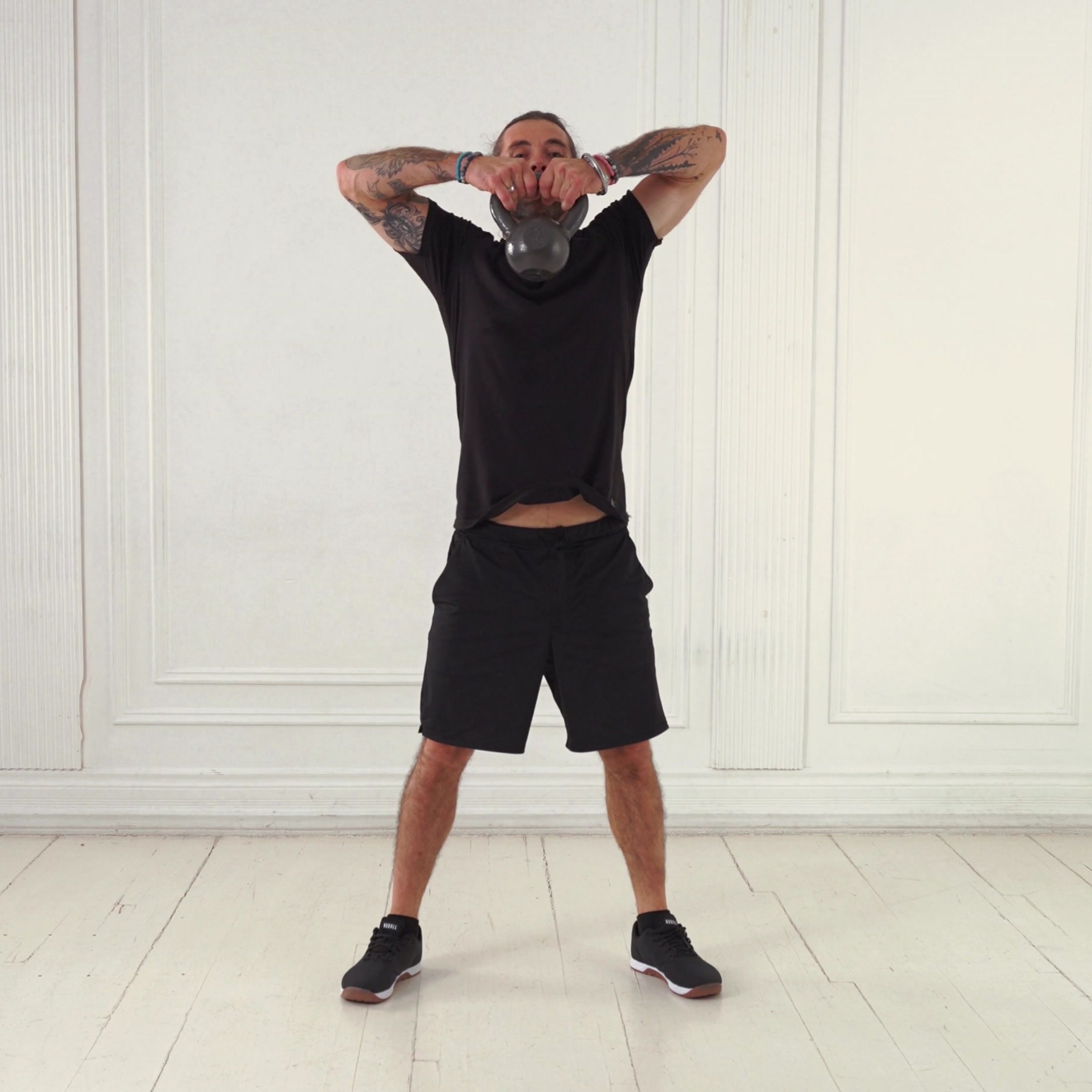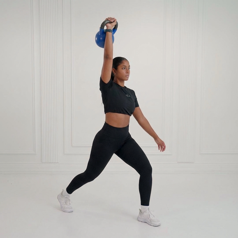 Explosive full-body kettlebell lift from swing to overhead lockout, targeting glutes, hamstrings, and core for power, conditioning, and athletic coordination.