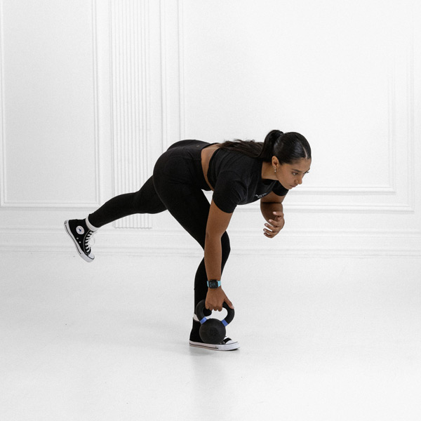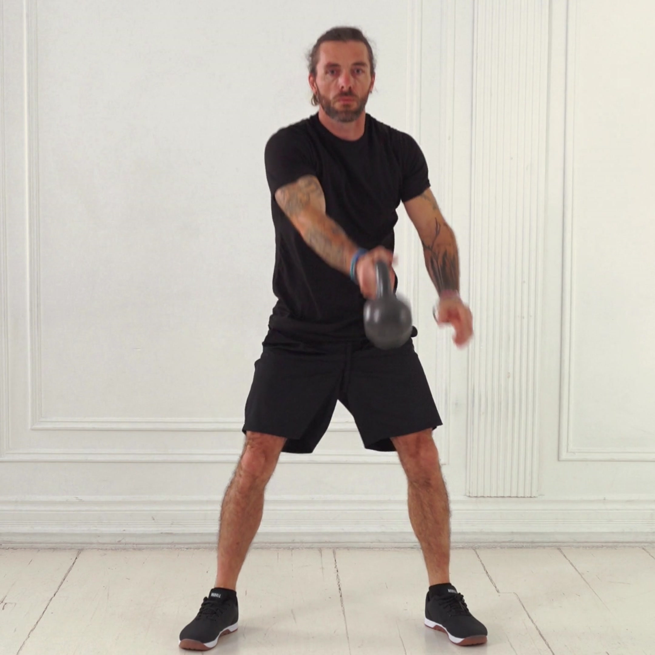 Dynamic hip hinge with a kettlebell that targets glutes and hamstrings to build explosive power and conditioning; engages core and back for full-body drive.