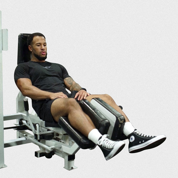 Sit on the hip abduction machine with back against the pad, feet on footrests, and pads snug against outer thighs. Adjust seat for knees to align with pivot point.