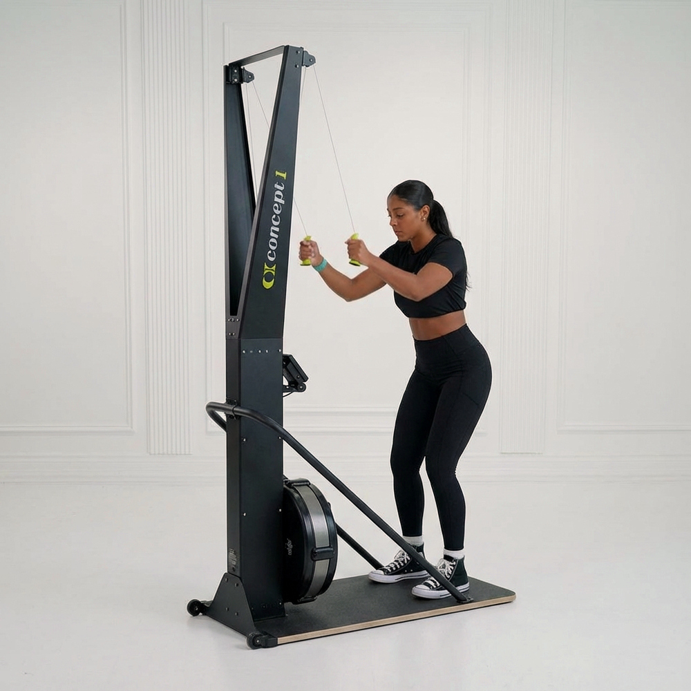 Inhale as you extend arms to the top position; exhale as you pull the bar down while bracing your core.