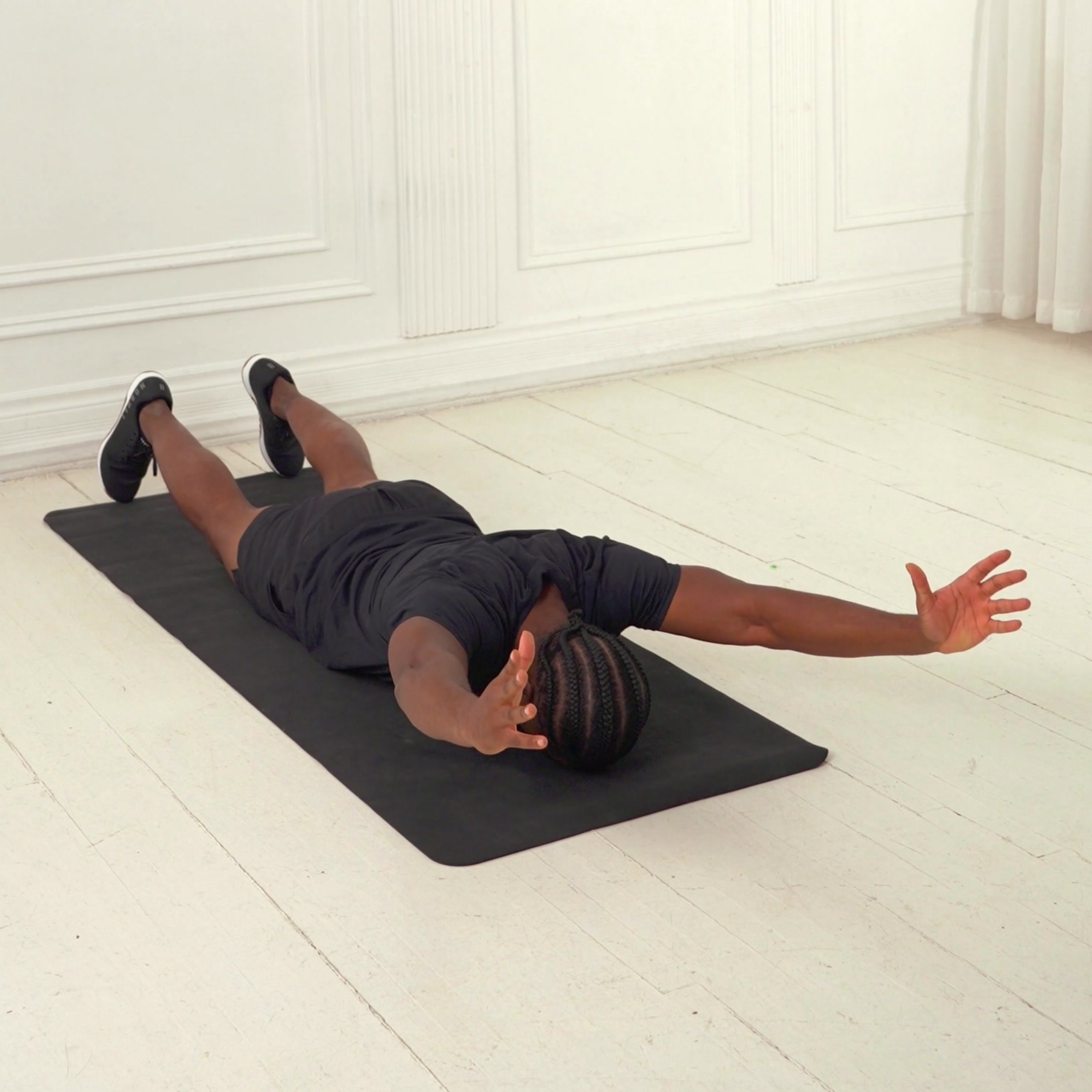 Lie face-down on the prone leg curl machine with knees aligned to the pivot point and ankle roller pad above ankles. Grasp handles and press hips and chest into pads.