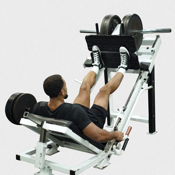A seated leg press machine that targets quads, glutes, and hamstrings to build lower body strength and hypertrophy; beginner-friendly alternative to squats with reduced lower back stress.