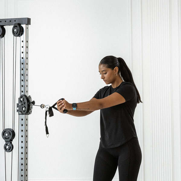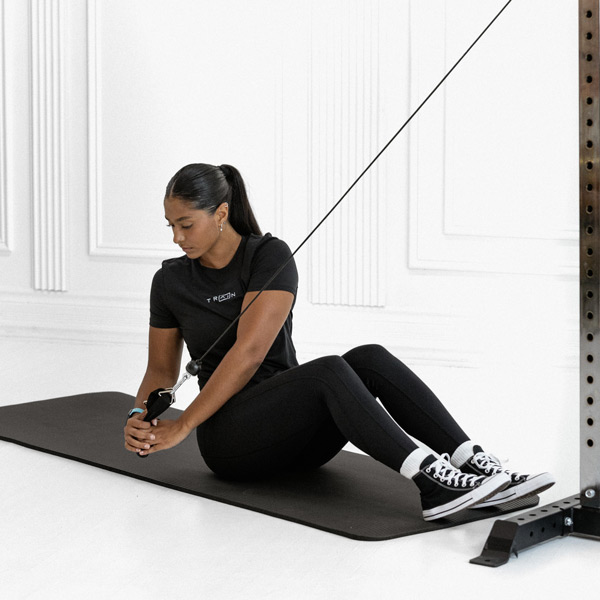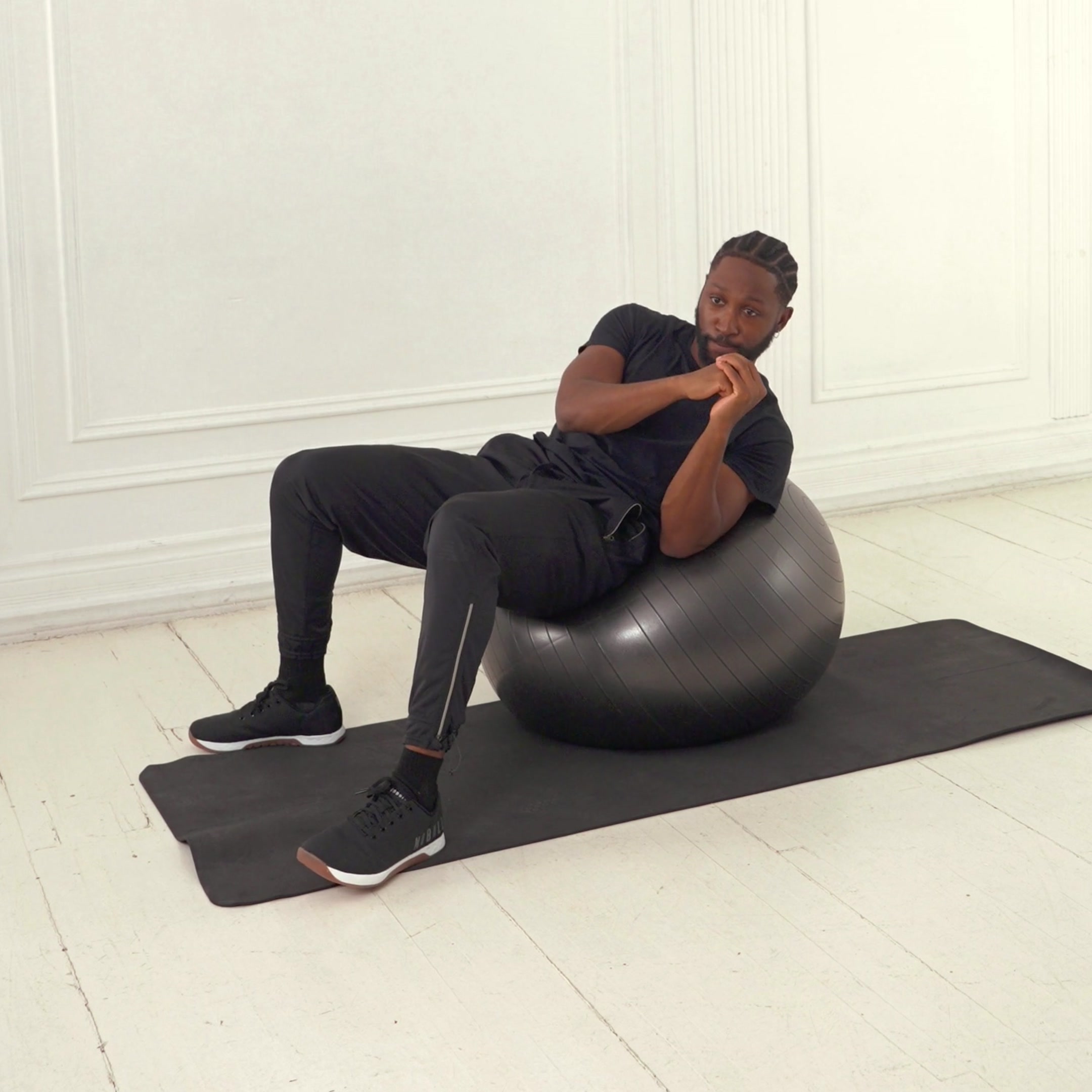 Twist until shoulders align with hips, without rounding spine or lifting hips.