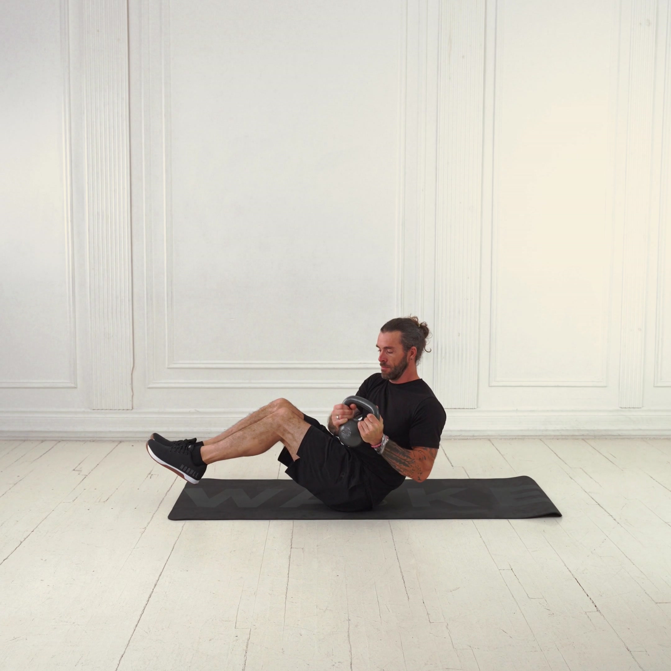 A seated rotational core exercise targeting obliques and rectus abdominis to build rotational strength and stability; commonly scaled by elevating feet or adding weight for increased challenge.