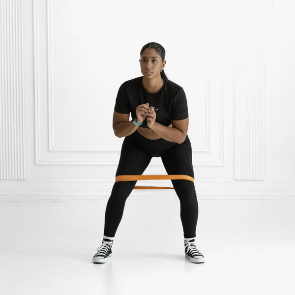 Attach a resistance band to a high anchor point like a door frame or pull-up bar. Kneel facing the anchor, grasp the band with both hands wider than shoulders, arms extended overhead with tension.