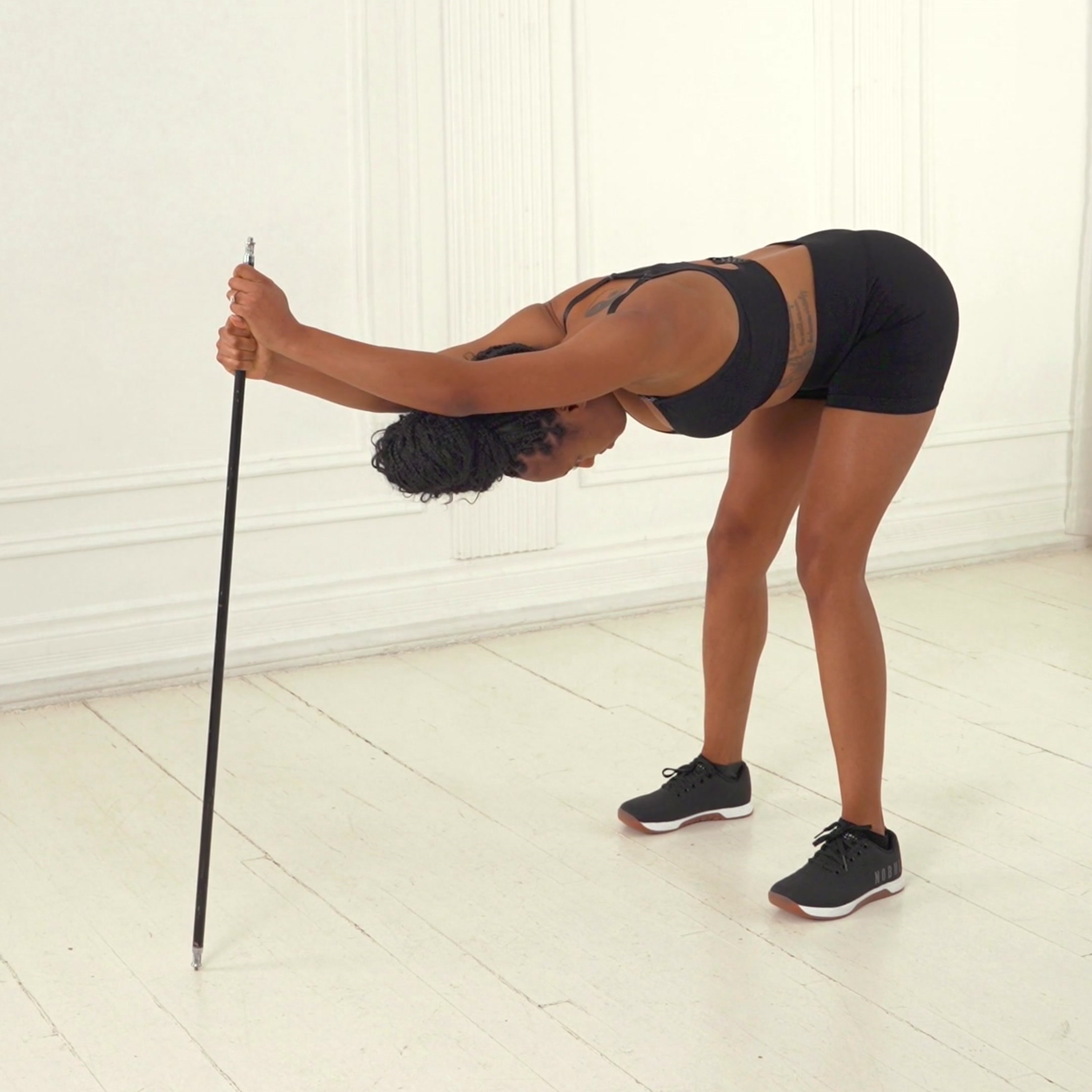 From arms at sides to shoulder height or full overhead if pain-free, without arching back.