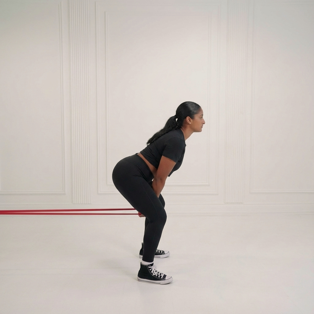 Unilateral hip hinge with resistance band targeting hamstrings and glutes to build posterior chain strength, stability, and address asymmetries; scalable by band tension.
