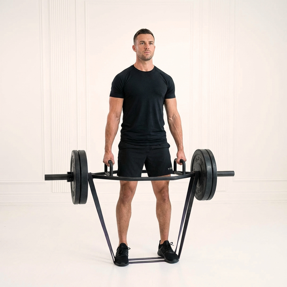 Hinge from upright to torso nearly parallel to floor with neutral spine and hamstring stretch, without back rounding.
