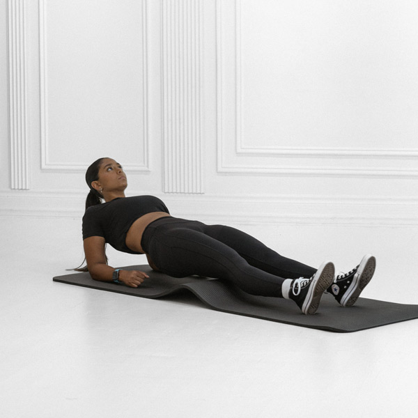 Start on hands and knees with hands under shoulders and knees under hips. Lift knees slightly off the ground while keeping a neutral spine and engaging your core.