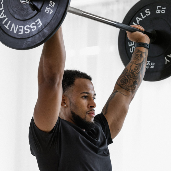A seated barbell vertical press that targets the deltoids and triceps to build shoulder strength and size; provides back support for focused upper body pressing without leg drive.