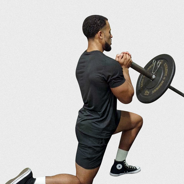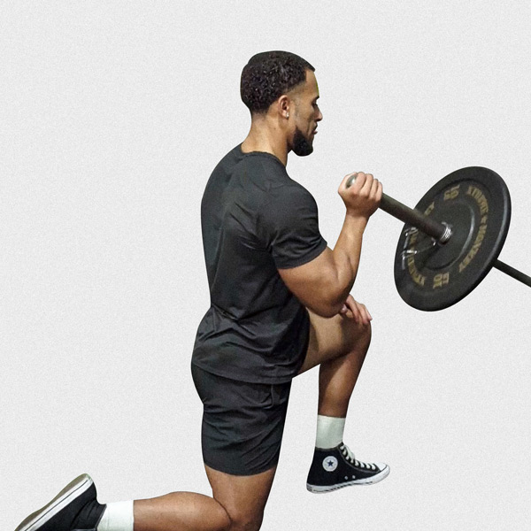 Lower bar to upper chest or clavicle level with elbows forward; press to full arm extension overhead without locking elbows.