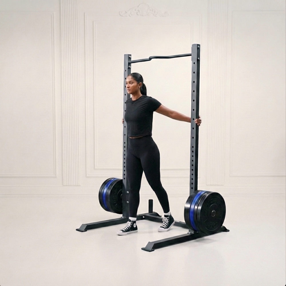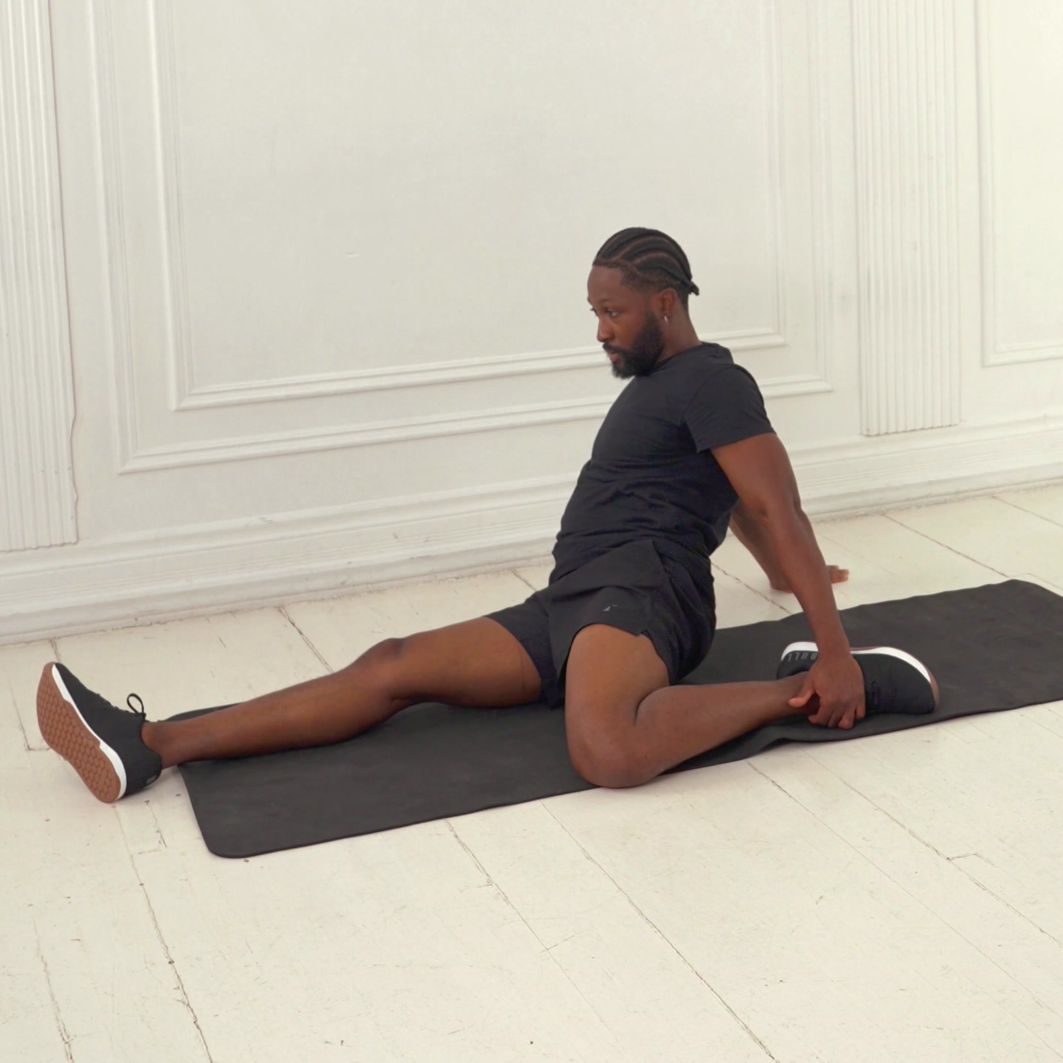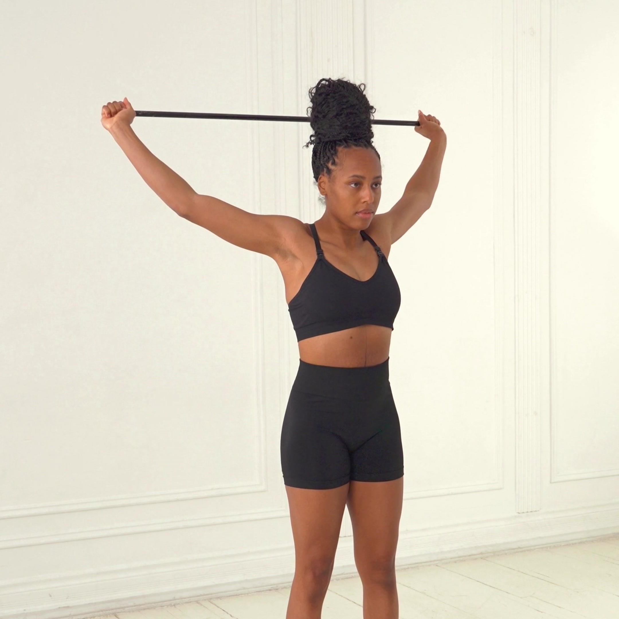 Inhale deeply to expand the chest, then exhale while maintaining the stretch and brace your core.