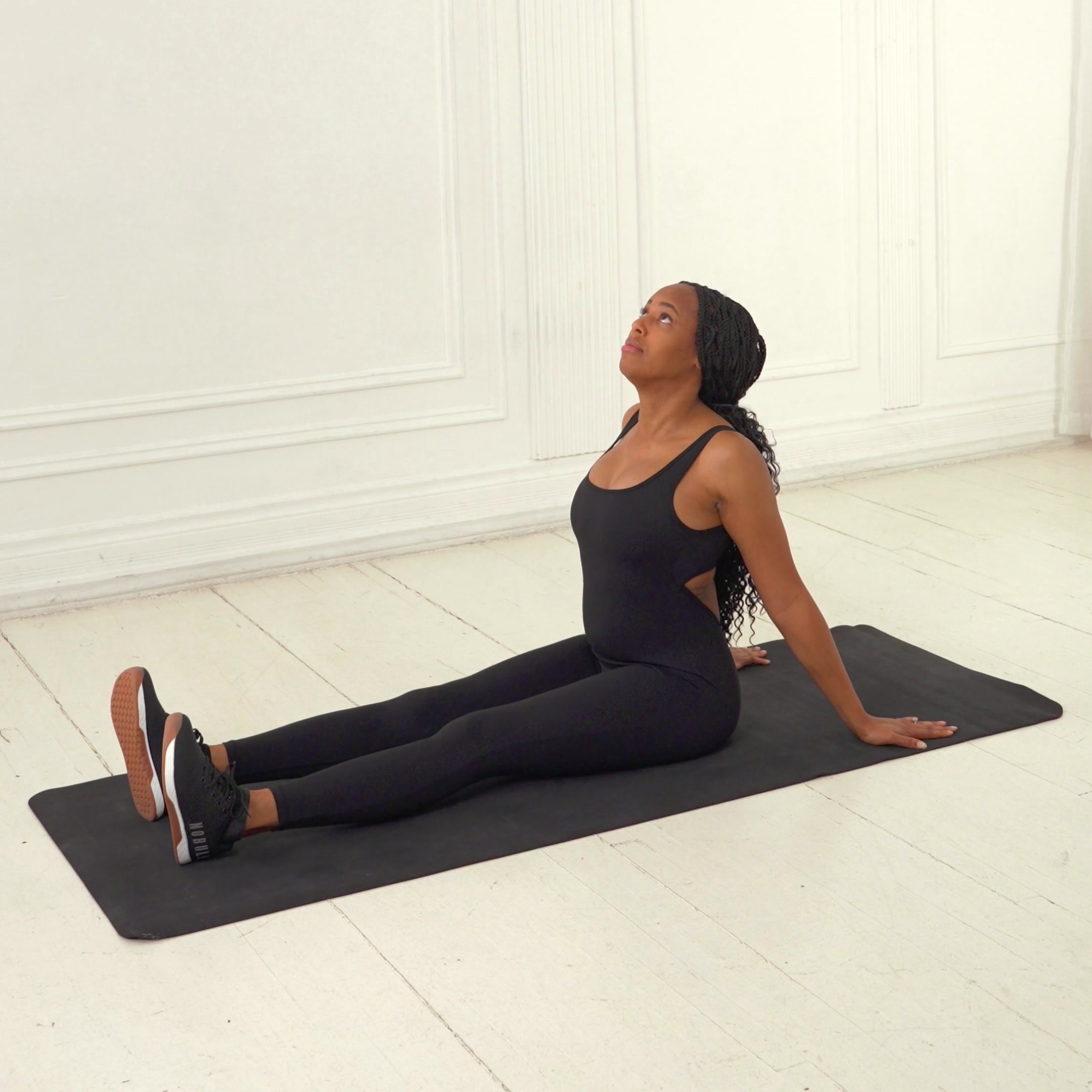 A seated hip stretch forming a figure four shape with the legs, targeting glutes and piriformis to enhance hip mobility and ease lower back tension from sitting.