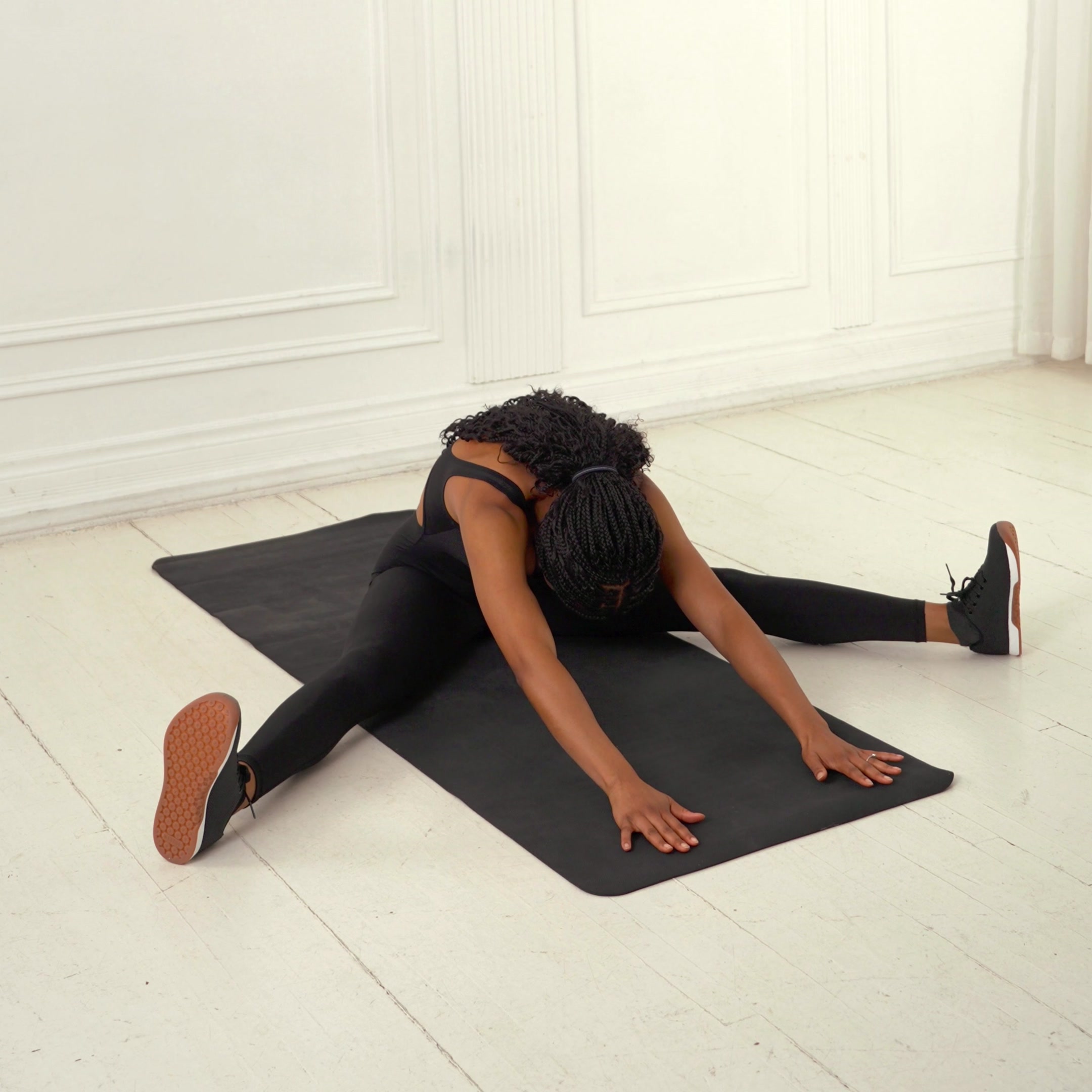 A bodyweight static stretch that lengthens the hamstrings to improve lower body flexibility and reduce tension; commonly used in warmups or mobility routines for better hip mobility and posture.