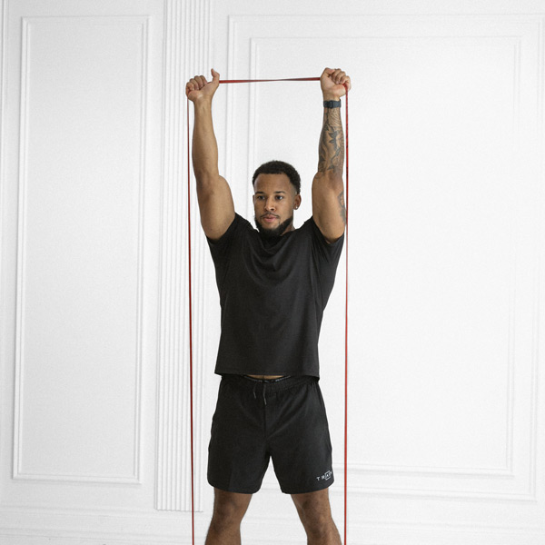 Inhale during the lowering phase and exhale during the pressing phase while bracing your core.