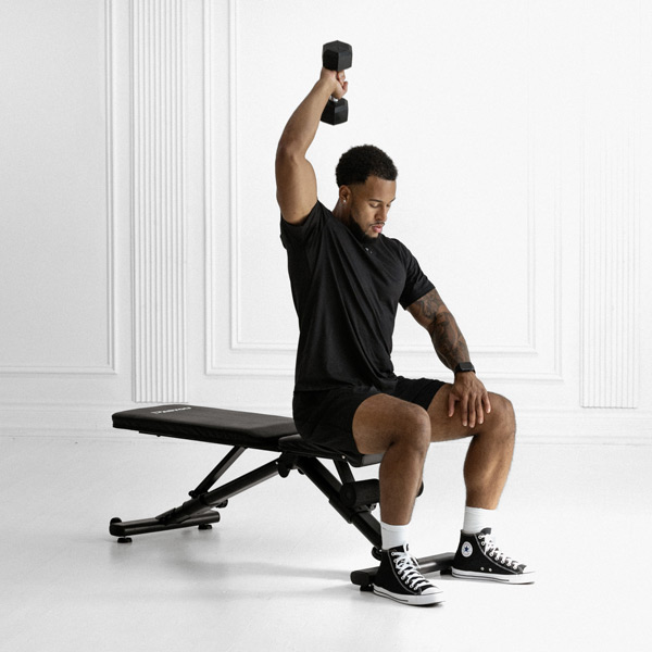 Extend arm fully overhead without locking elbow; lower until forearm is behind head for full triceps stretch.