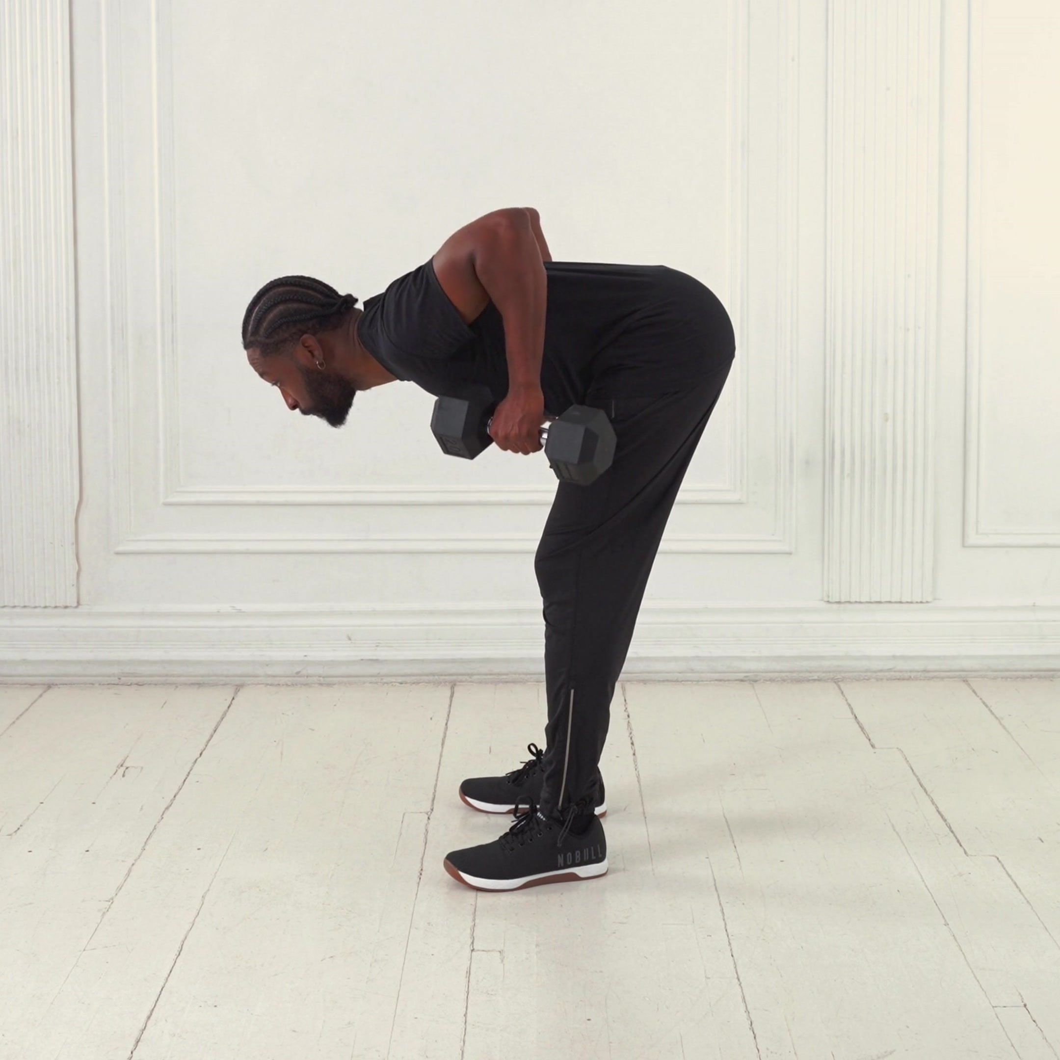Inhale as you lower the bar, brace core, and exhale as you drive hips forward.