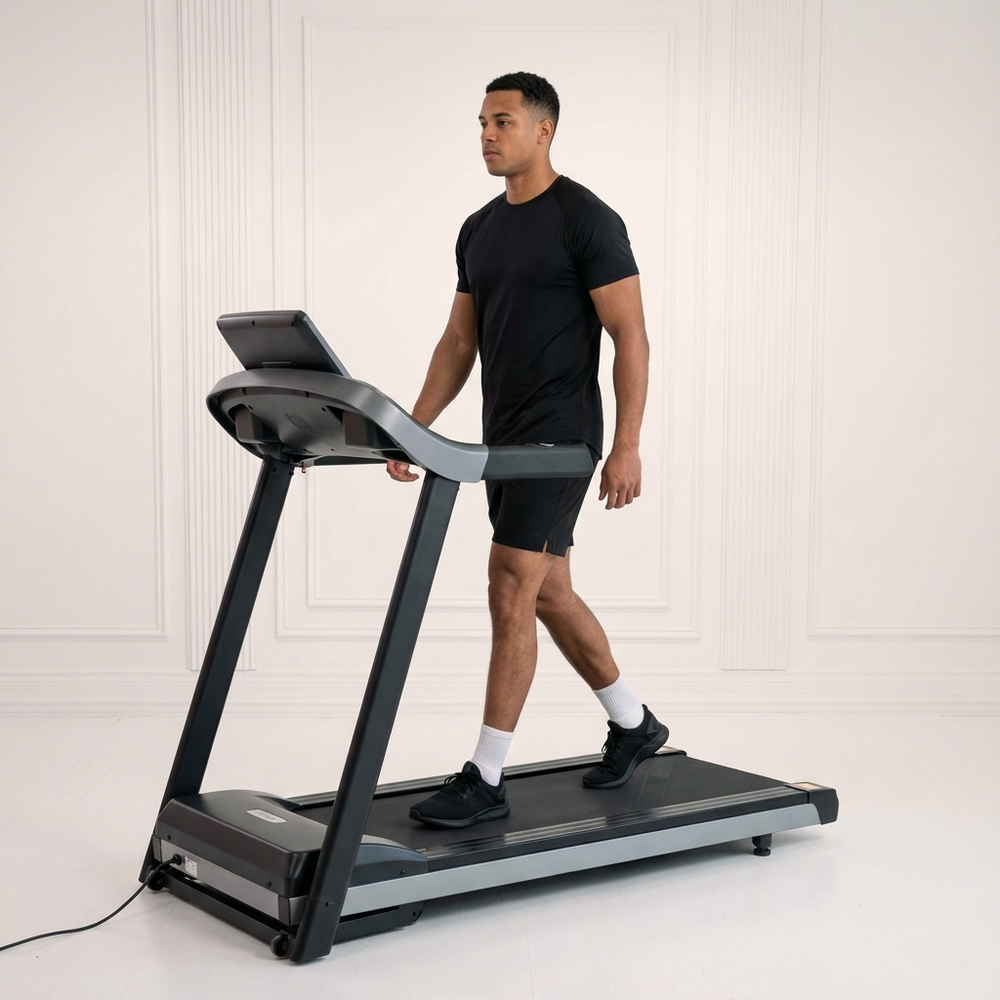 Begin standing in Mountain Pose with feet hip-width apart, arms at sides, and weight evenly distributed.