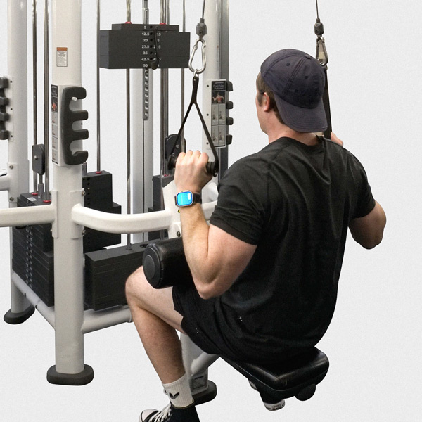 A seated horizontal pull on a cable machine using a neutral-grip V-bar that targets the lats, rhomboids, and middle traps to build back strength and improve posture.